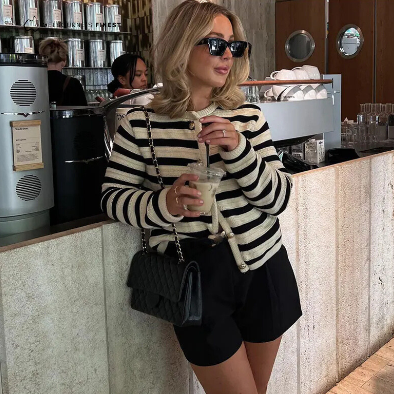 Wrap yourself in style and comfort with the Aimee™ Striped Cardigan, your ultimate wardrobe essential for this season and beyond. Say goodbye to chilly days without sacrificing fashion, as this meticulously crafted cardigan effortlessly combines warmth with style, ensuring you always look great no matter the occasion.