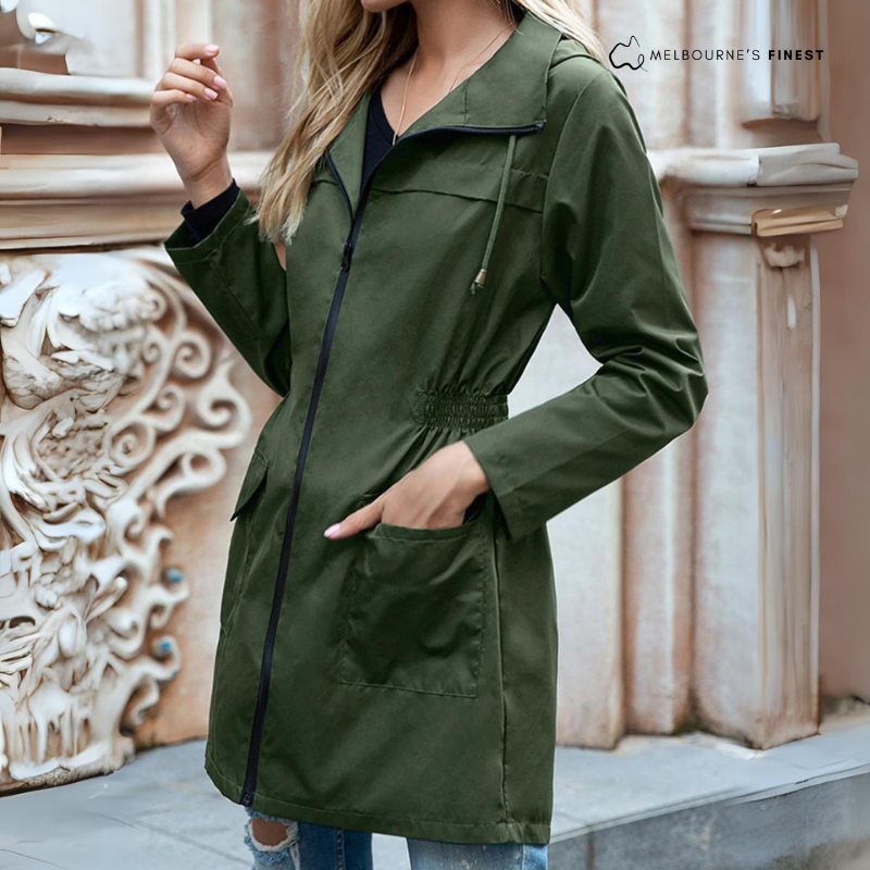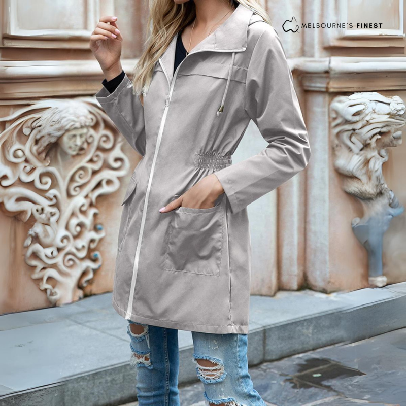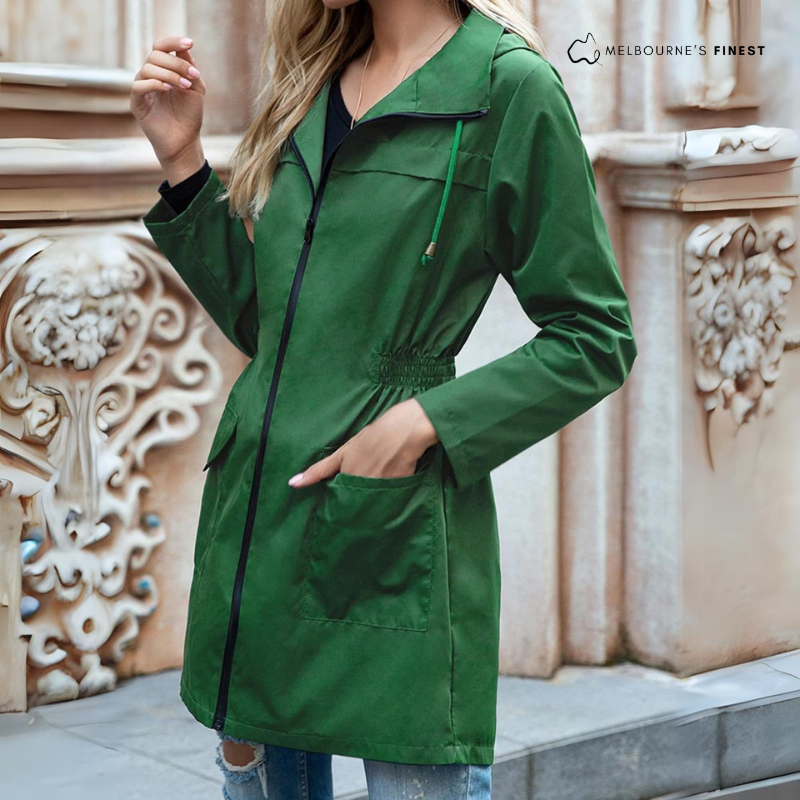Embrace the seasons confidently with our Alexis™ Stylish Windbreaker Trenchcoat. Crafted for both fashion and function, it features lightweight water-resistant material and waterproof zippers, keeping you dry and stylish in any weather. Plus, its excellent breathability ensures all-day comfort.