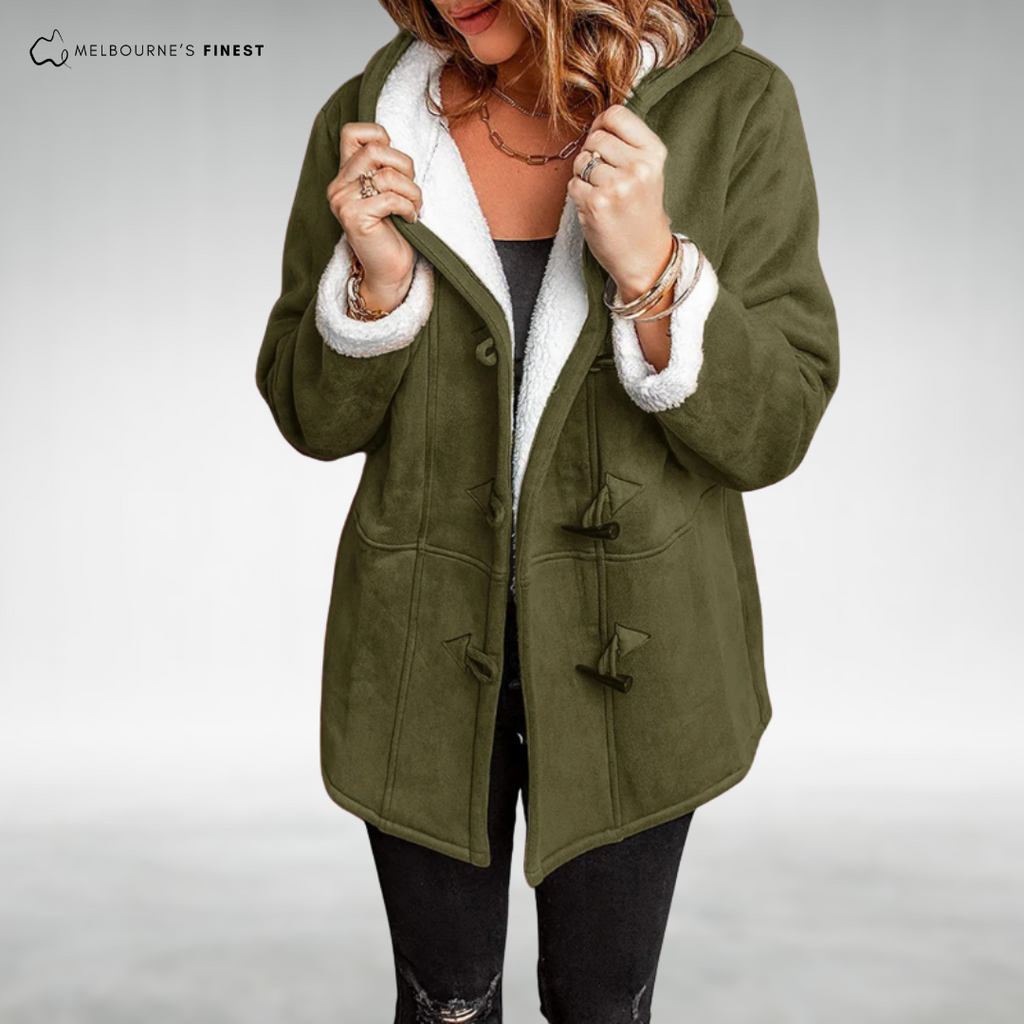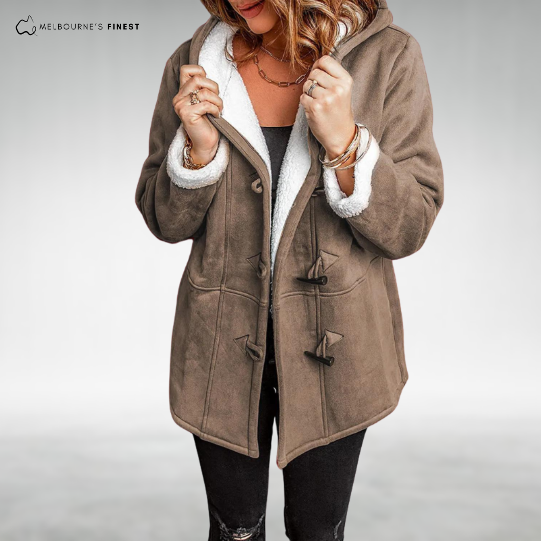 Emphasize your style with the Amanda™ Stylish Women's Coat, an exceptional piece that seamlessly combines comfort and sophistication. This button-down coat is crafted with meticulous attention to detail and features a regular fit for a timeless and versatile look. The high-quality materials ensure durability and a luxurious feel on the skin, while the hooded collar adds a contemporary touch, making it perfect for the cold months.