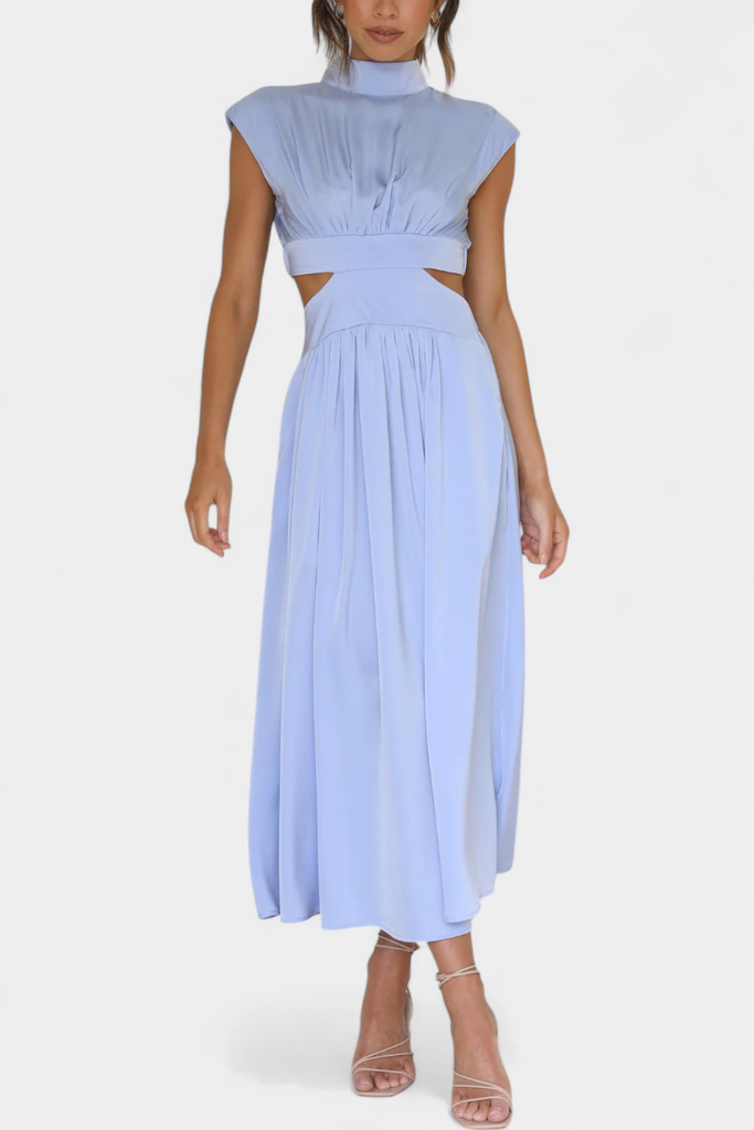 Moderne et aérien, cet ensemble long allie des lignes sculpturales à un design minimaliste qui met en valeur la silhouette. Son col montant, ses fentes latérales et sa coupe fluide créent une esthétique élégante, parfaite pour les journées lumineuses ou les événements saisonniers avec une touche sophistiquée.