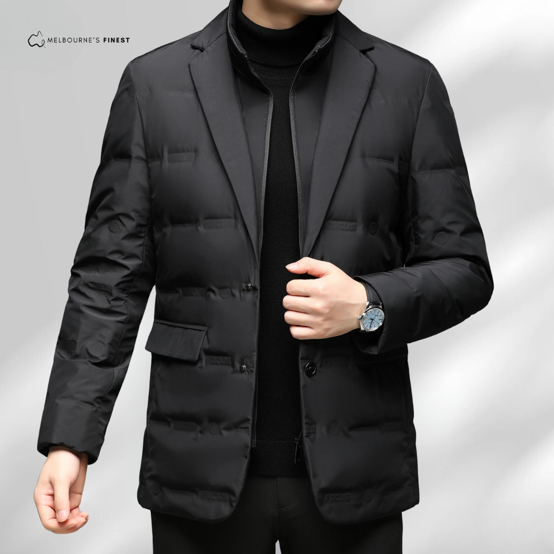✔️ Elegant Design - Tailored fit and integrated lapel for a sophisticated look that transitions seamlessly from day to night.