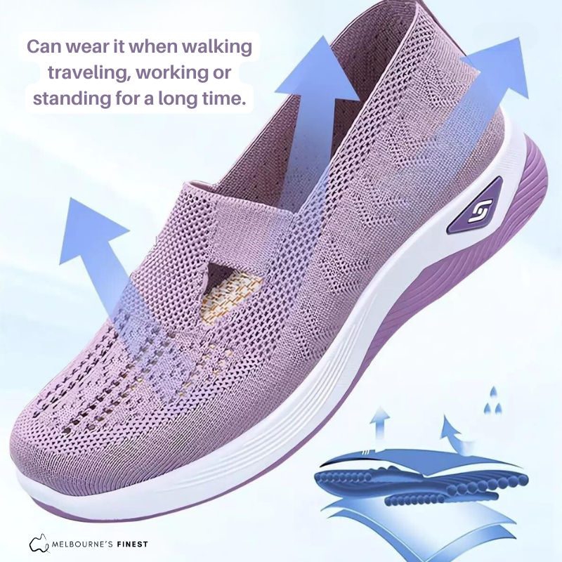 Imagine walking through your day with shoes that not only provide ultimate comfort but also keep your feet cool and supported. BreatheComfort Orthopedic Women's Shoes are designed with a soft, light knitted upper material that allows your feet to breathe, keeping them dry and comfortable. These shoes offer exceptional support with a triple arch design, shock absorption, and cushioning, making them the perfect choice over similar products for all-day comfort and stability.