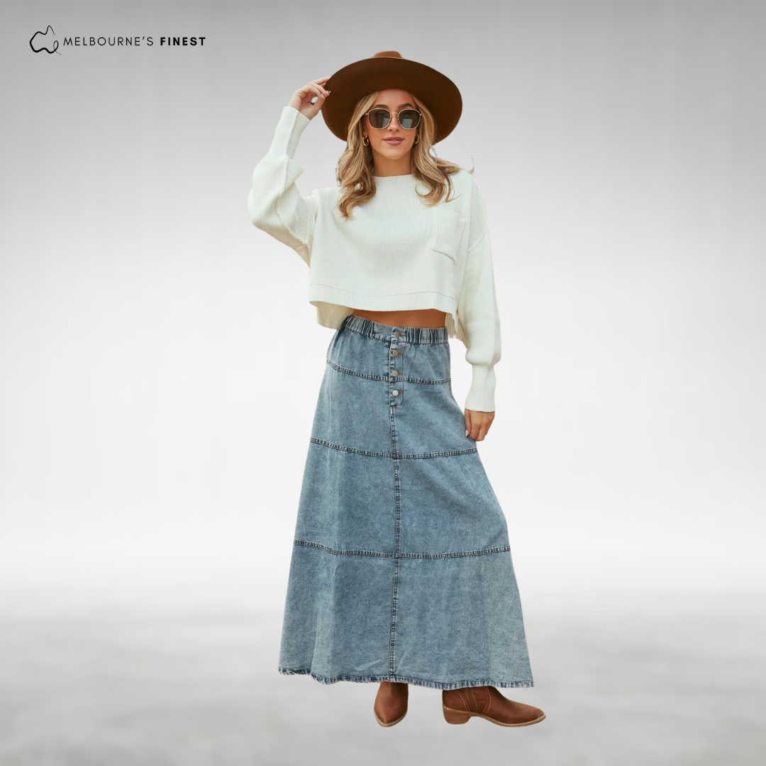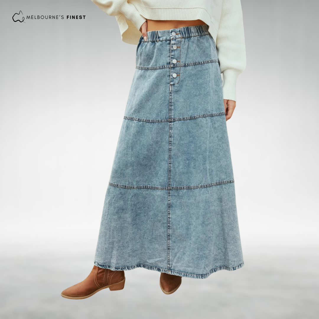 Ella™ Boho Maxi Denim Skirt: Timeless Style with Everyday Comfort