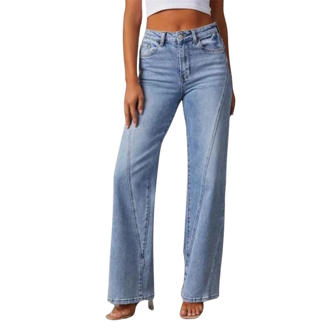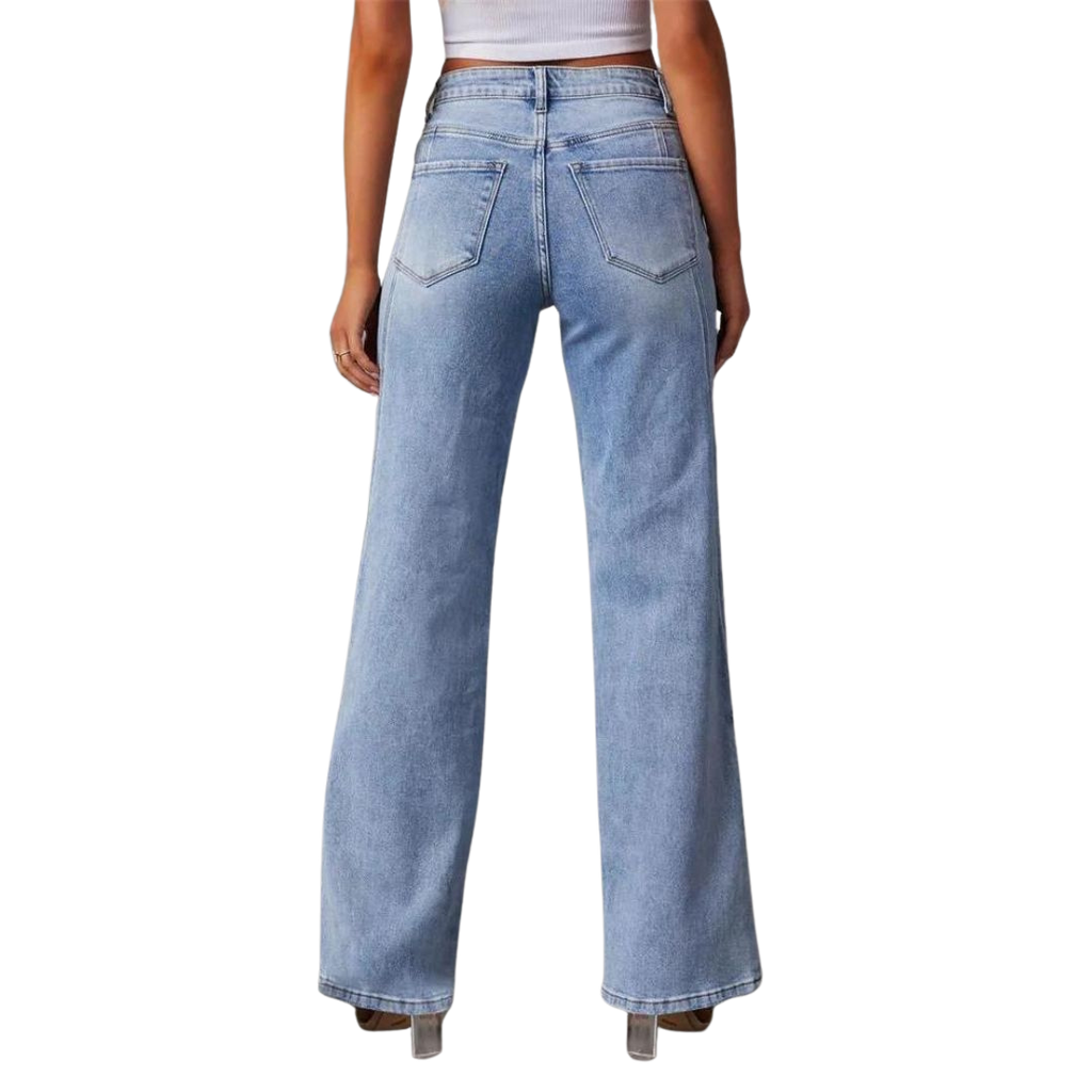Ce jean taille haute à coupe large est conçu pour galber votre taille et allonger vos jambes, créant une silhouette élancée et raffinée. Son tissu en denim premium, légèrement extensible, épouse parfaitement votre corps sans jamais vous comprimer. Fini les pantalons rigides et inconfortables, ce modèle s’adapte à vos mouvements pour un bien-être optimal tout au long de la journée.
