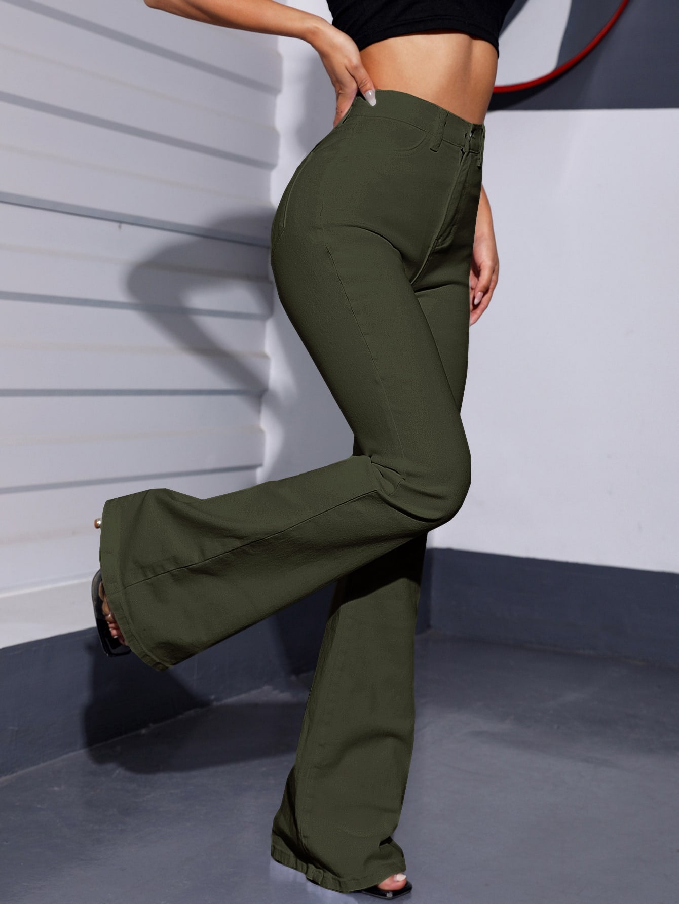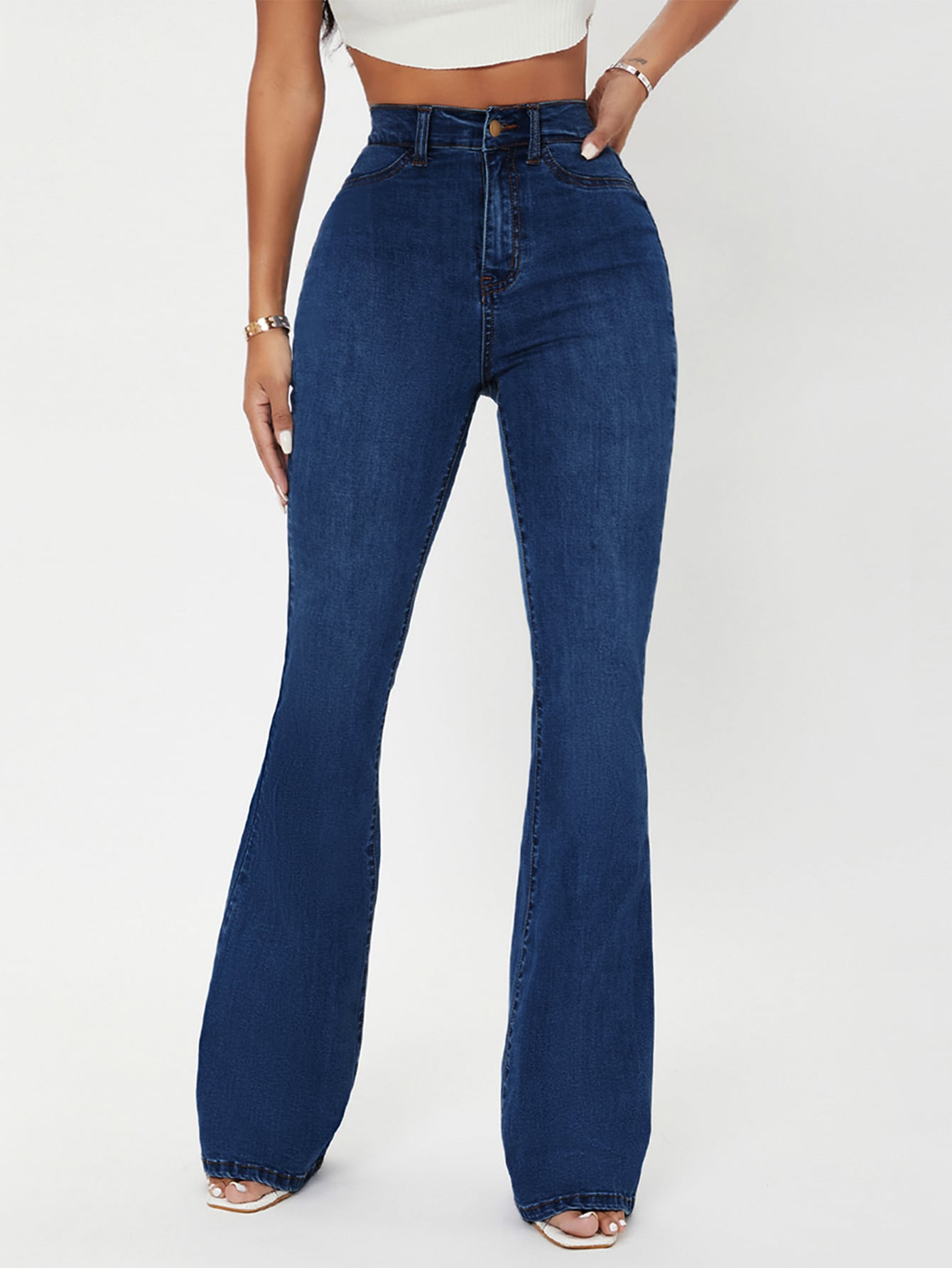 Affichez-vous avec confiance dans ces Jeans Évasés Taille Haute Curvy, conçus pour mettre en valeur votre silhouette avec une coupe flatteuse. Avec une taille haute et un chic design évasé, ces jeans allongent vos jambes et offrent un look élégamment intemporel. Le lavage moyen et le motif uni les rendent polyvalents pour des sorties décontractées comme pour des occasions habillées.