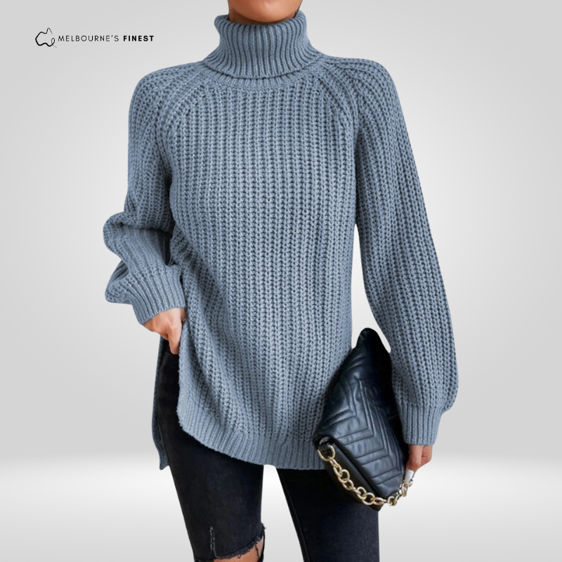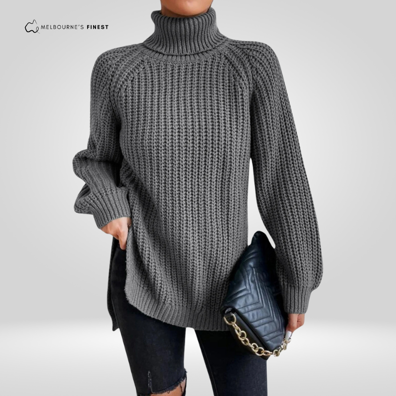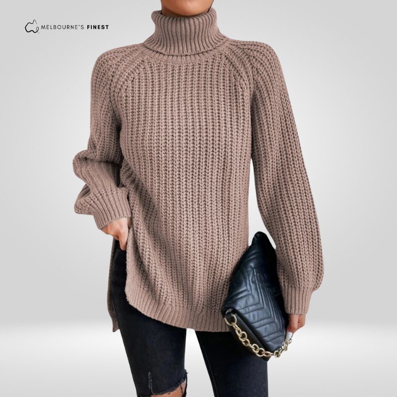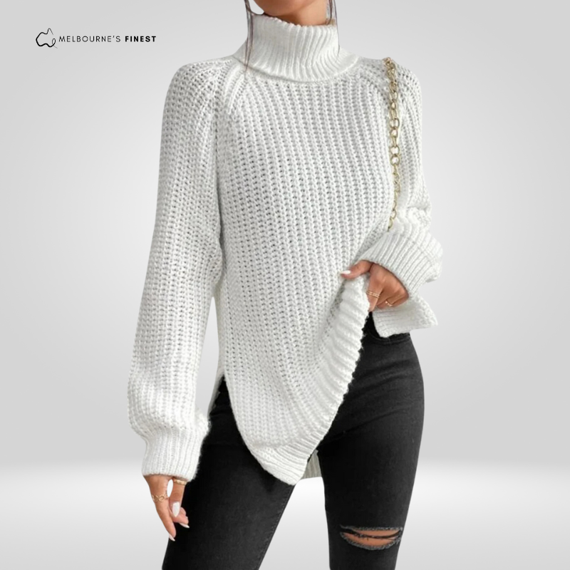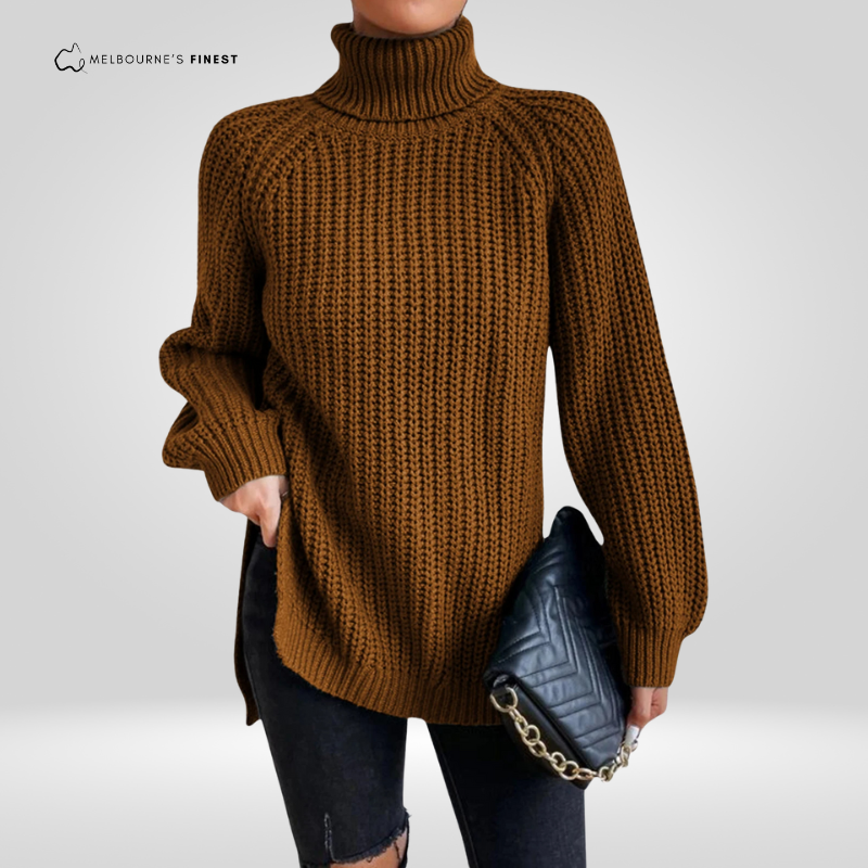 ✔️ Elegant Design - Featuring a turtleneck, long sleeves, and slits on both sides, the Leona™ sweater exudes pure style and warmth with its unique and chic design.