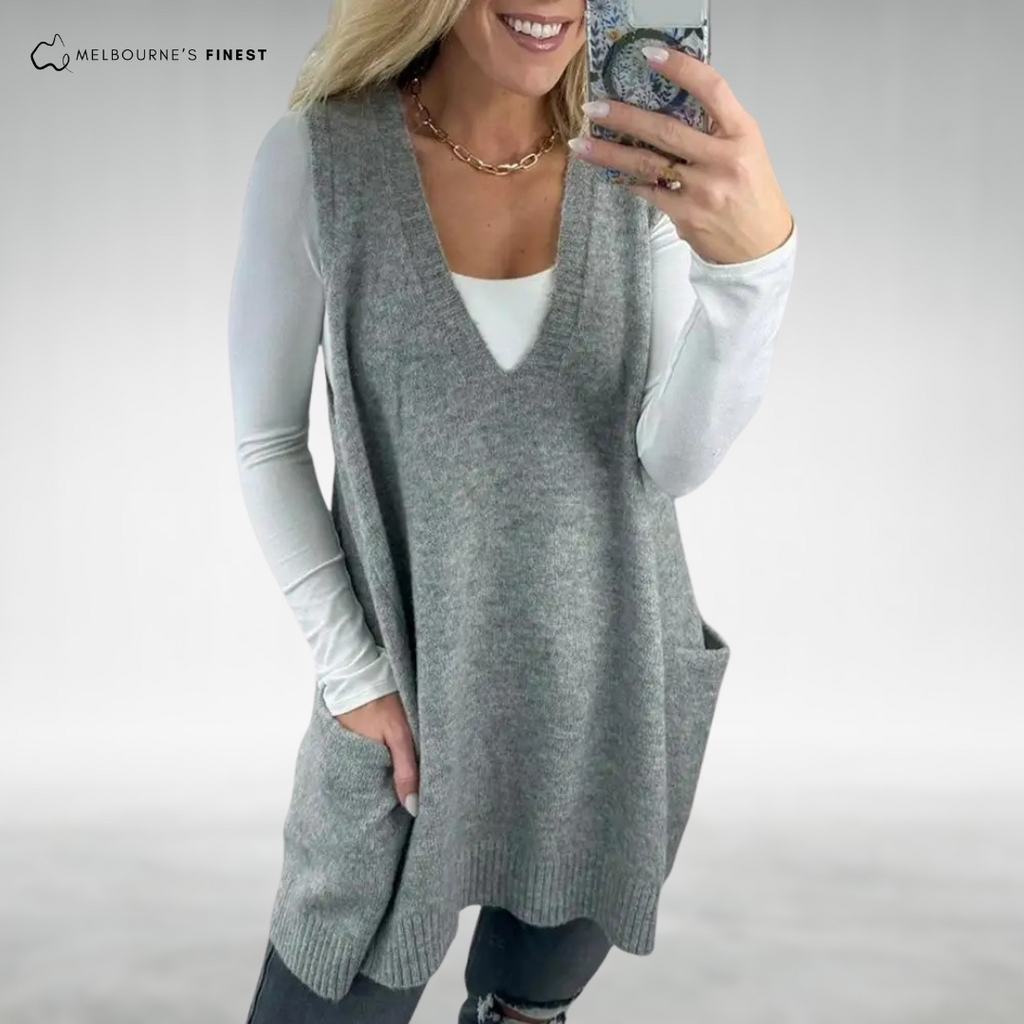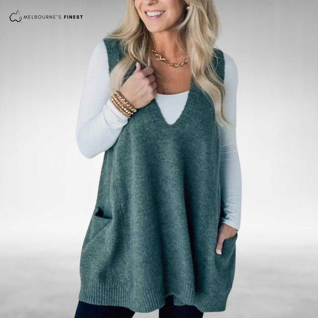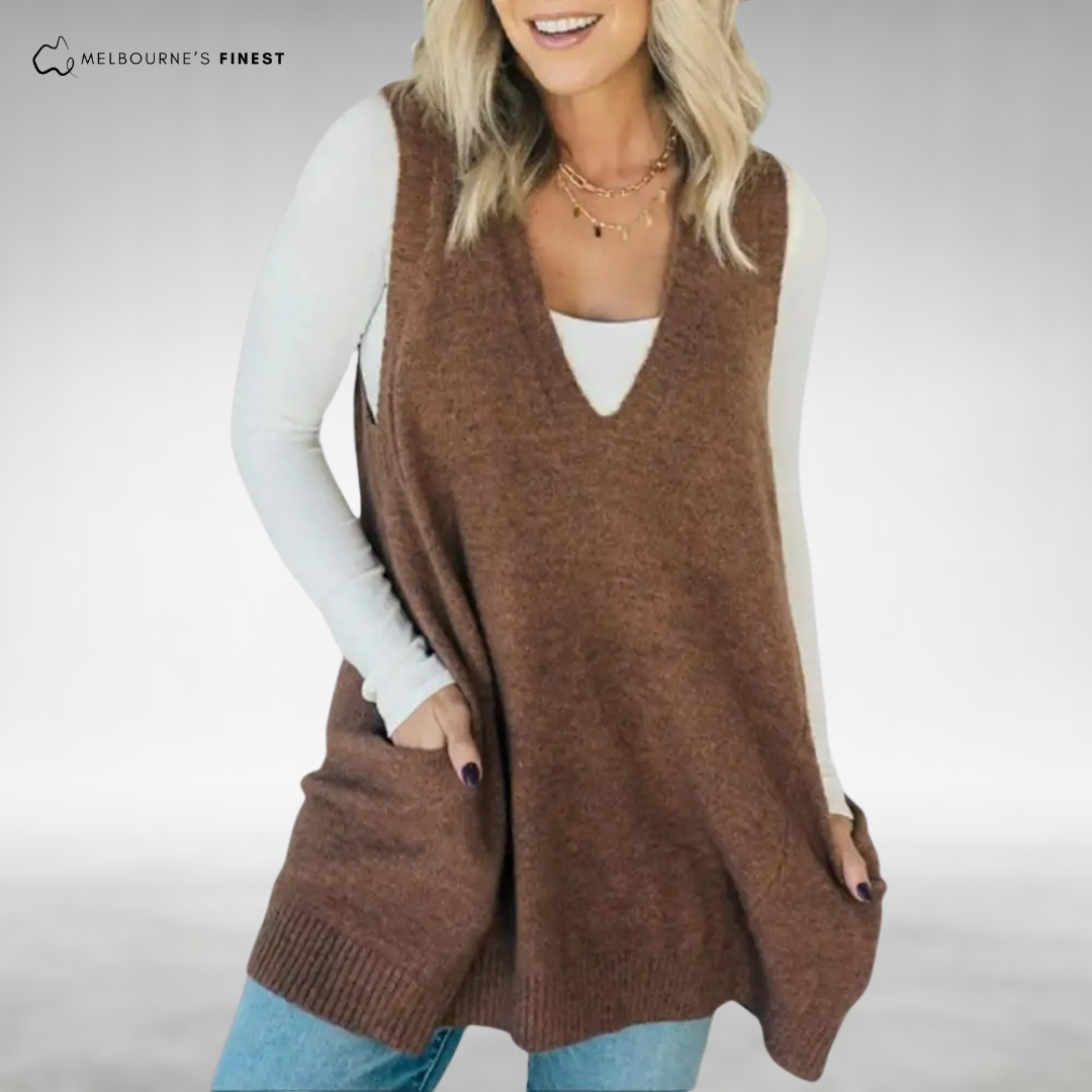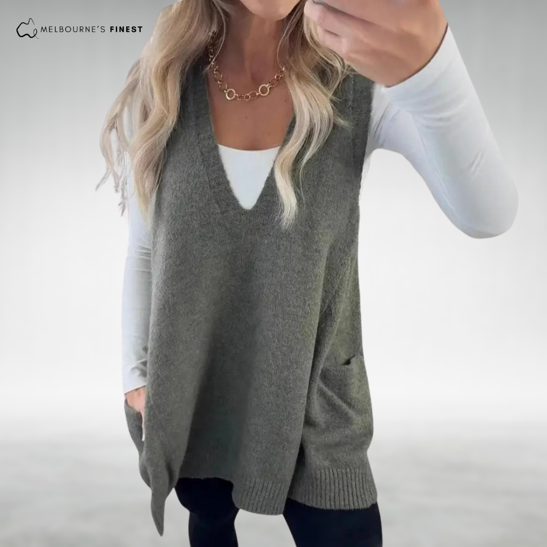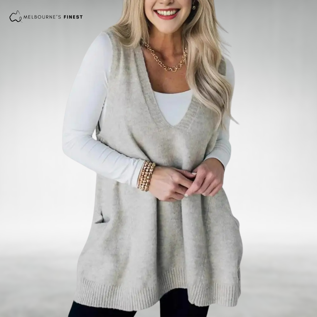 The Marcela™ Cosy Knit Vest offers a flattering loose fit, an ultra-soft knit texture, and effortless versatility. It’s the ideal solution for those chilly days when you want warmth without sacrificing style, giving you a cosy, put-together look that feels just as good as it looks.
