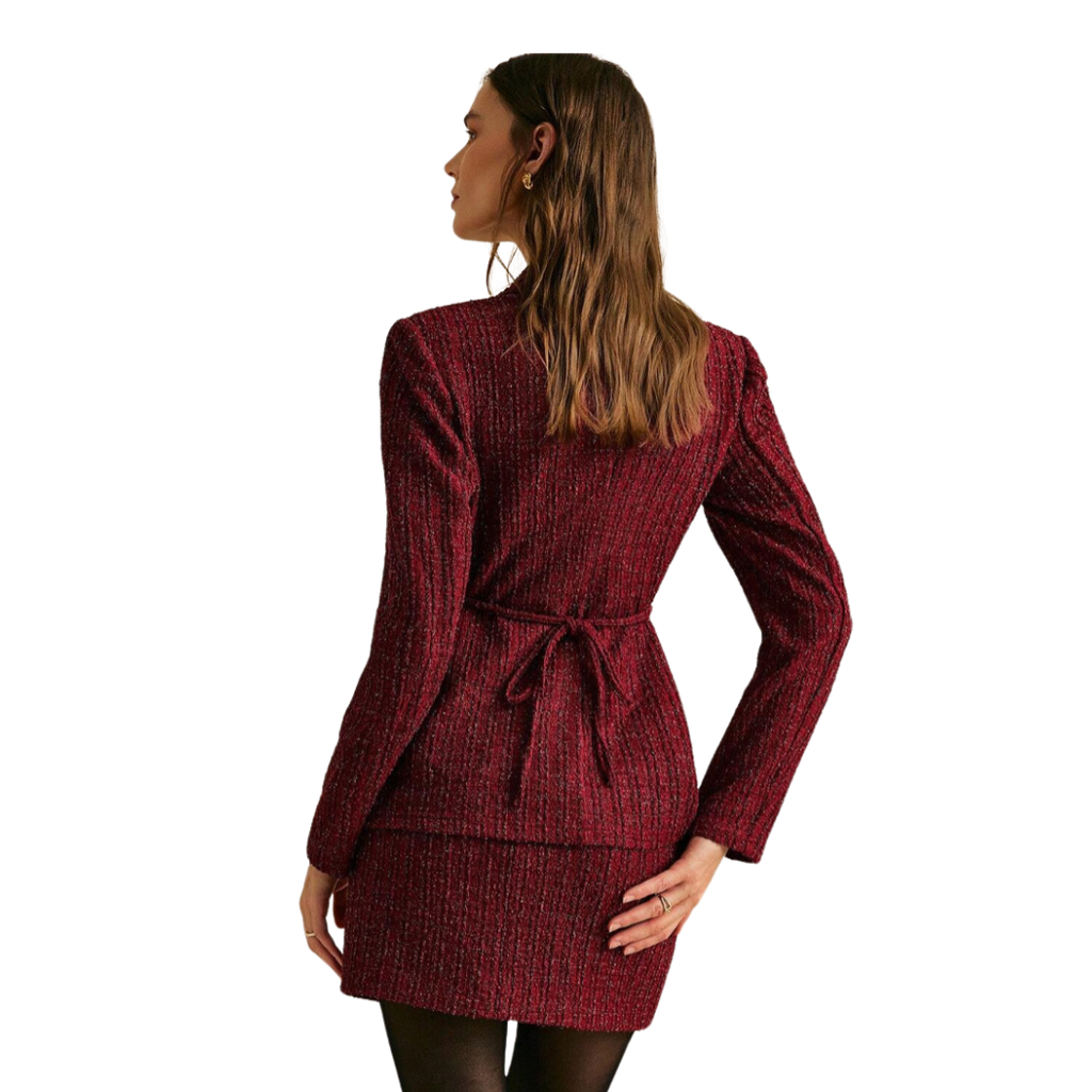 La veste comprend des poches fonctionnelles pour plus de praticité et une silhouette structurée qui complète toutes les silhouettes. Associez-la à sa jupe assortie ou portez-la seule pour une tenue polyvalente et chic.