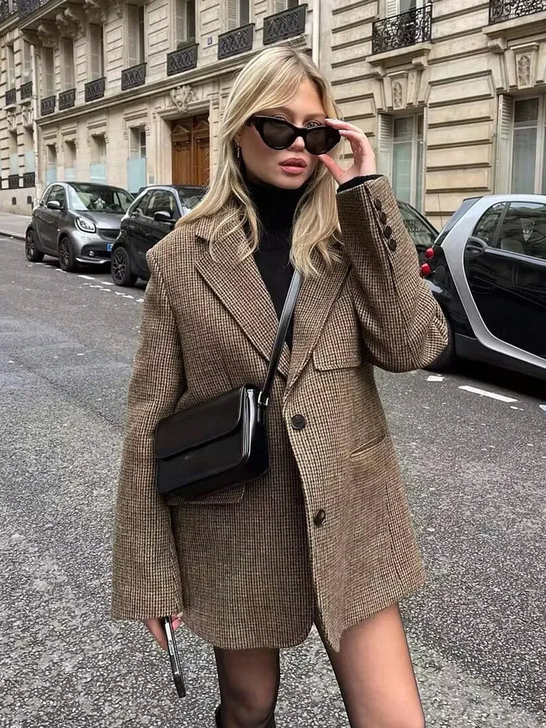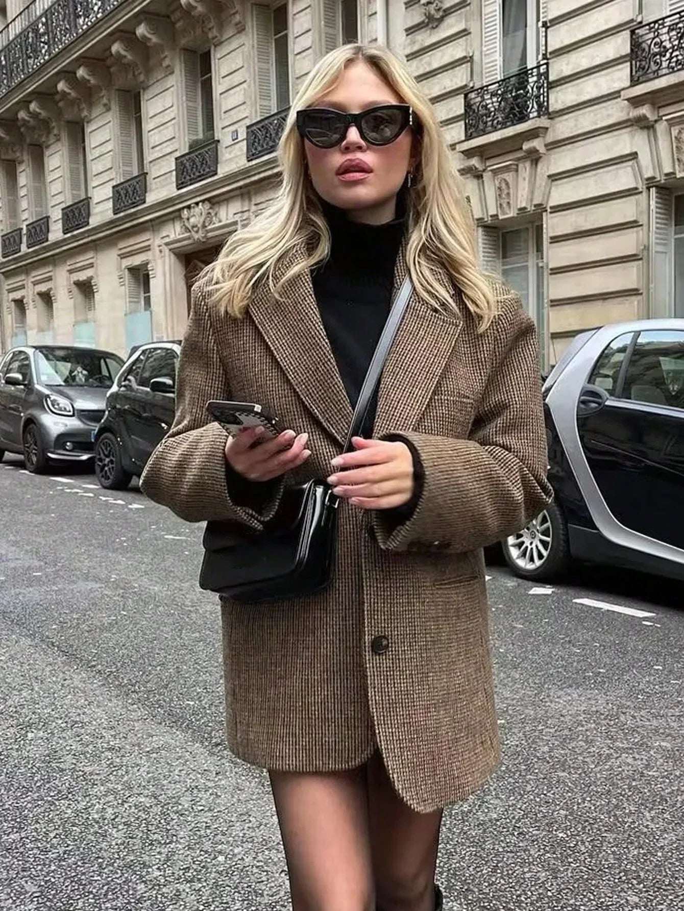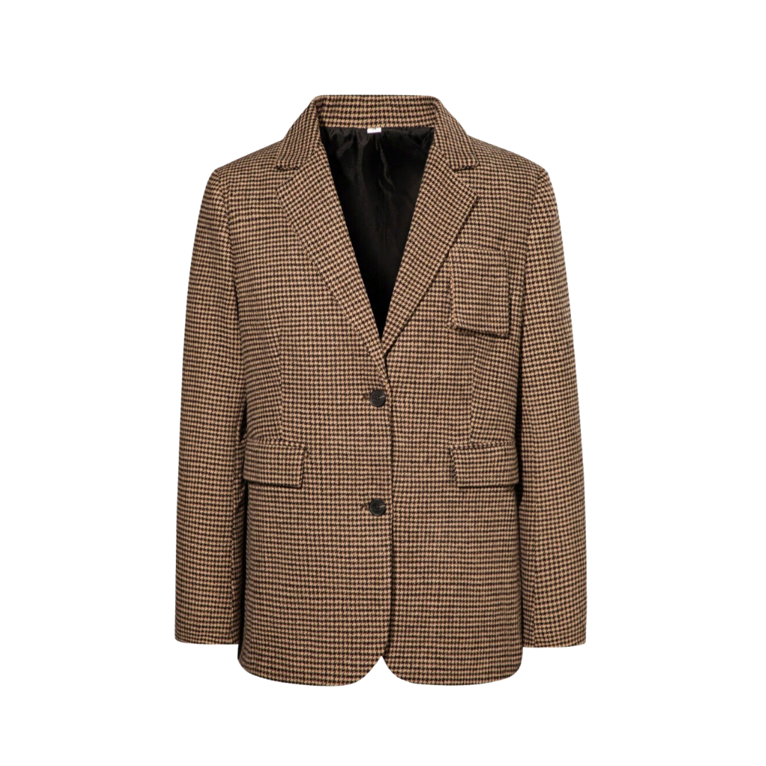 Mathilde | Blazer à Carreaux Marron à Simple Boutonnage
