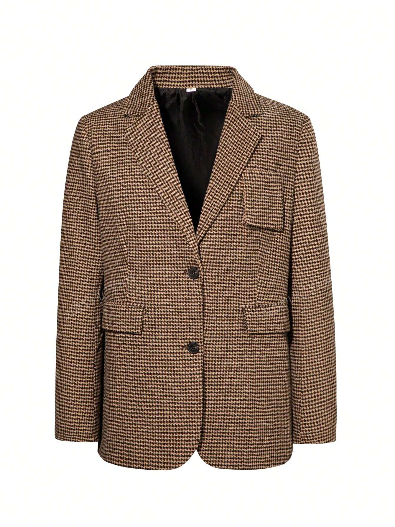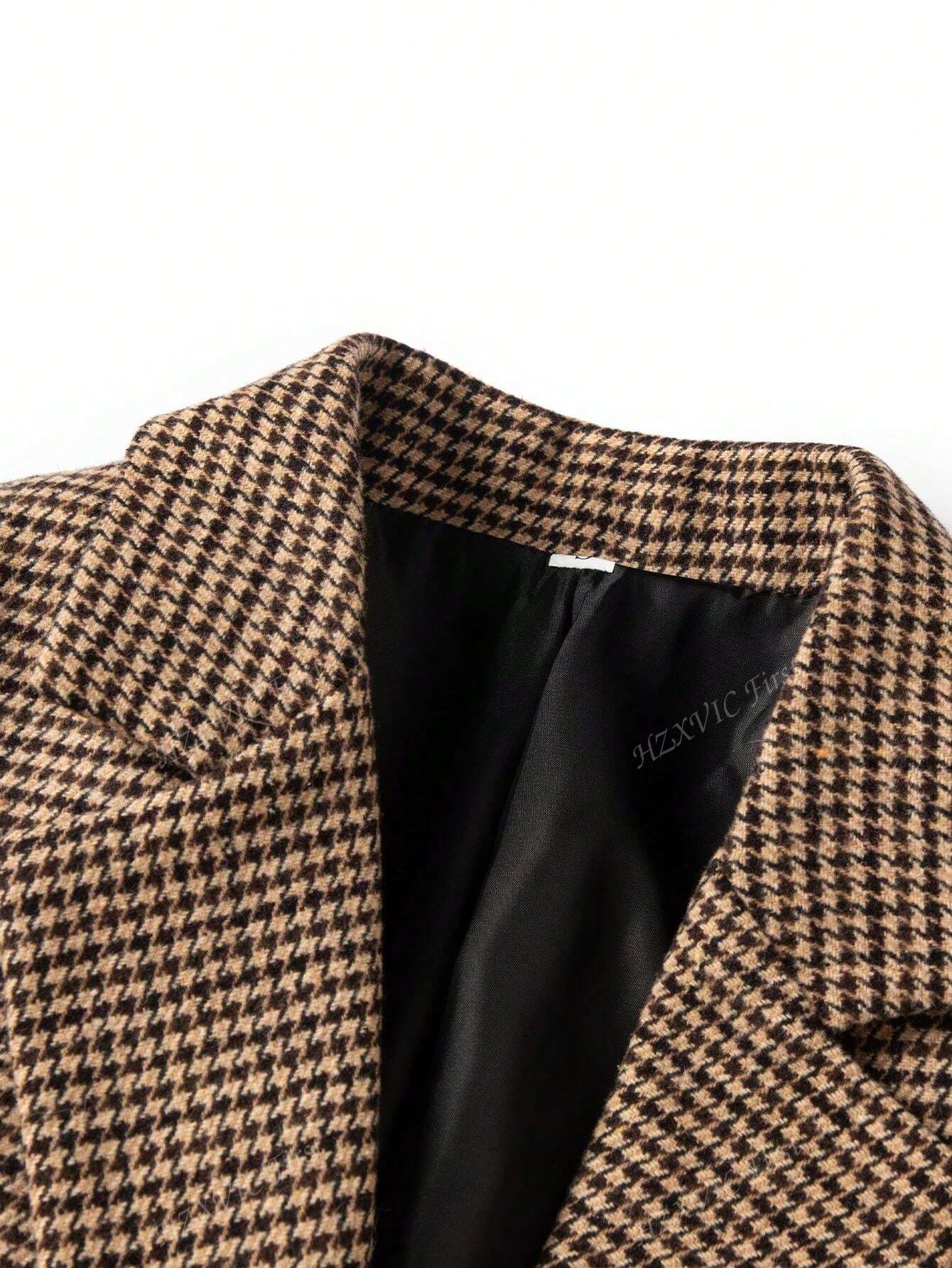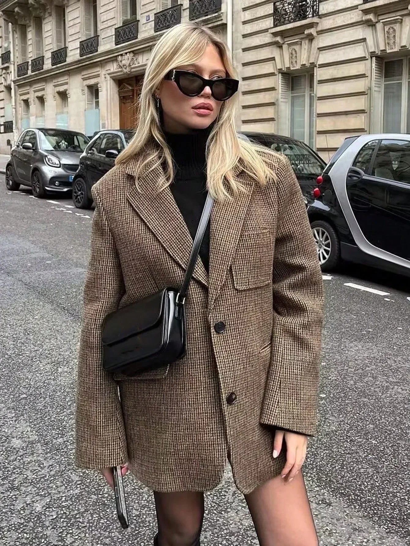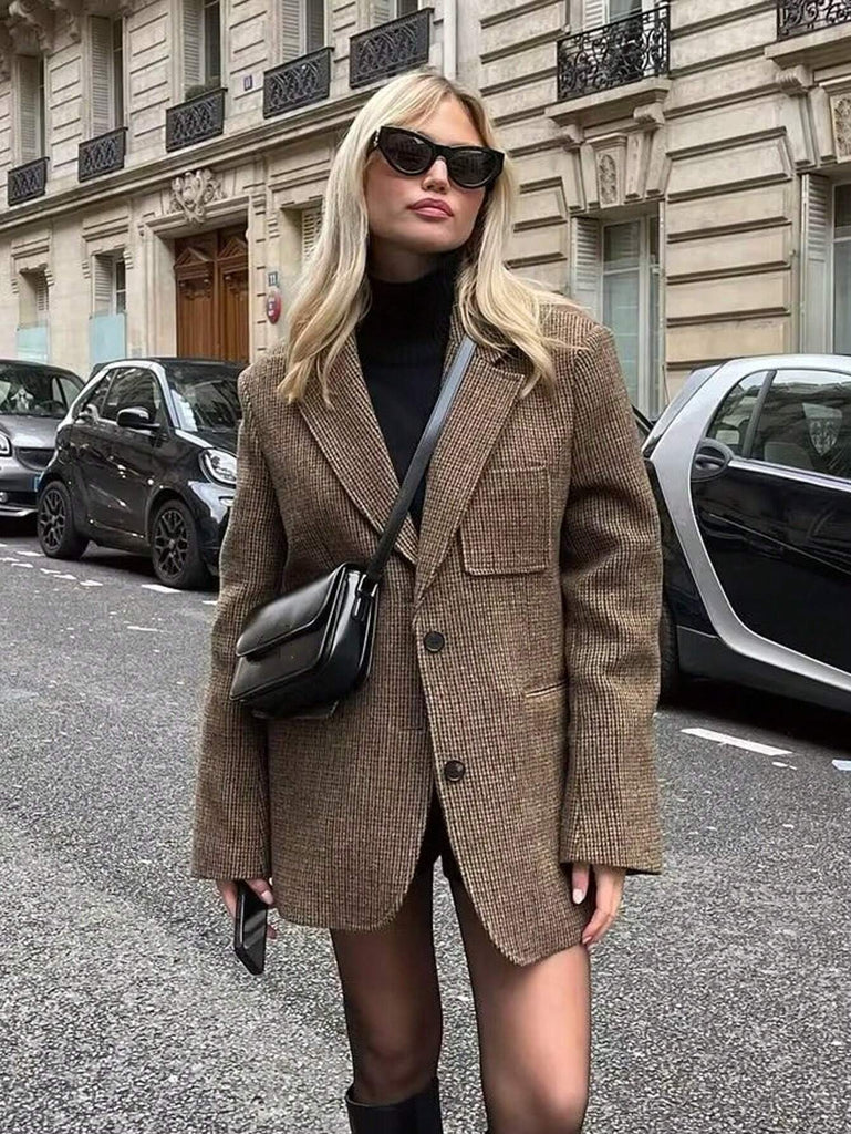 Blazer à Carreaux Marron à Simple Boutonnage – Élégance Décontractée
