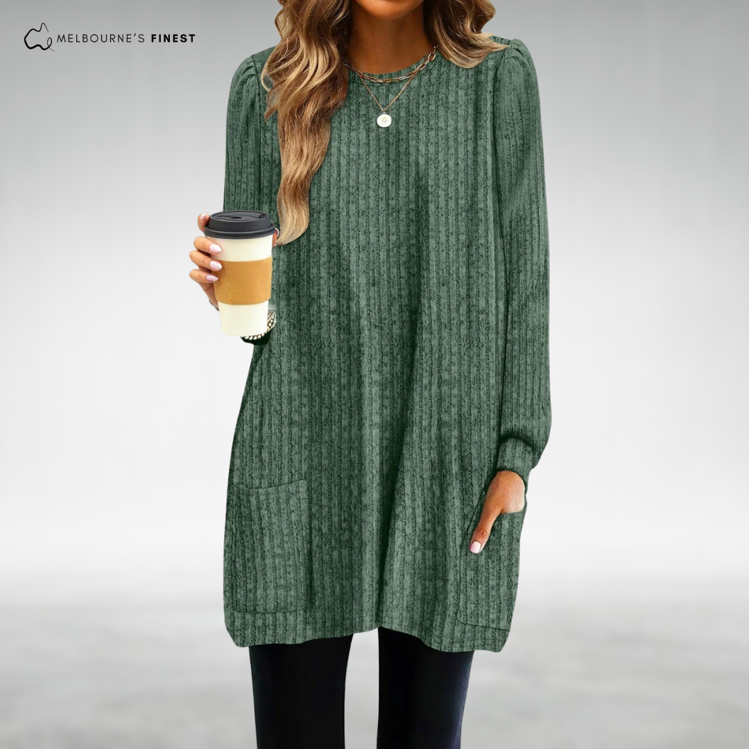 The Nadia™ Cozy Pocket Tunic features a relaxed tunic fit, soft ribbed knit fabric, and a versatile design that effortlessly adapts to your lifestyle—whether you’re running errands, relaxing at home, or meeting friends. Nadia™ is your solution for comfort without compromise.