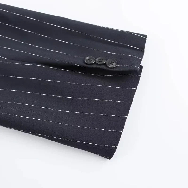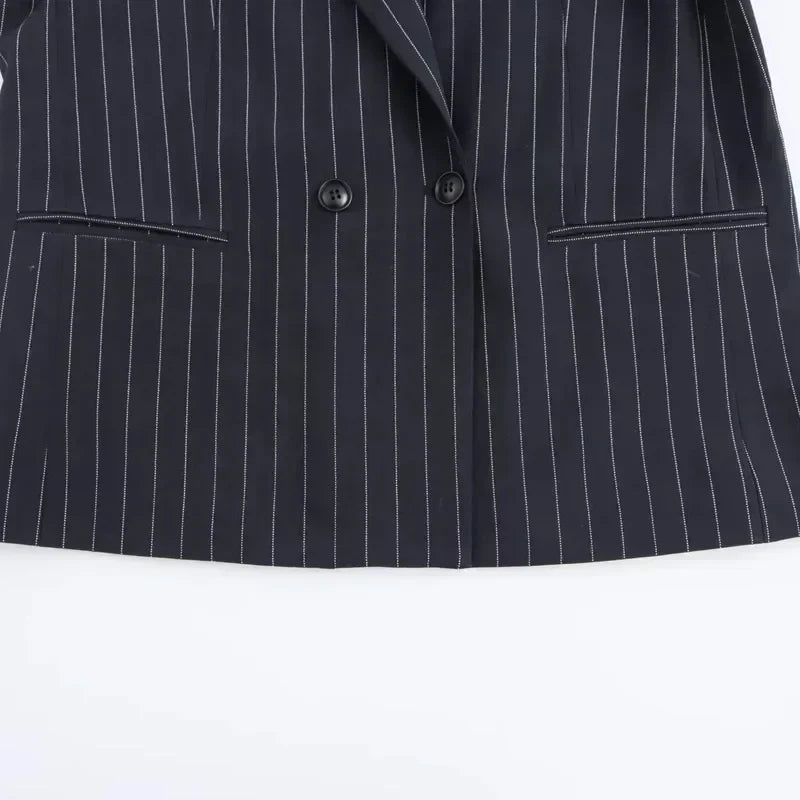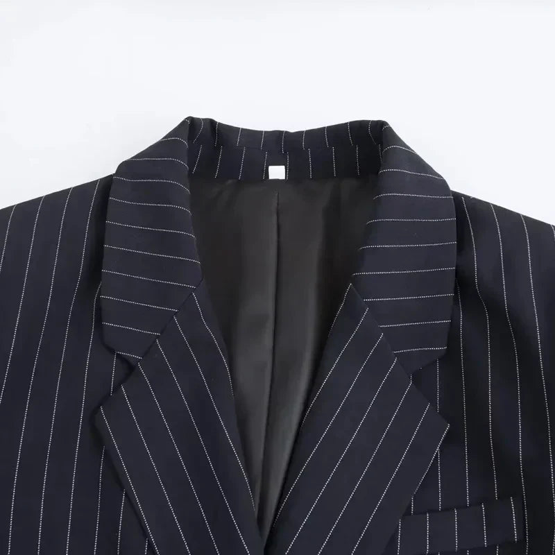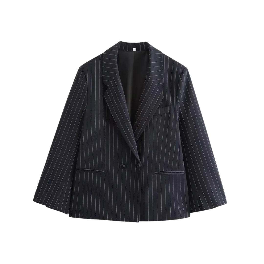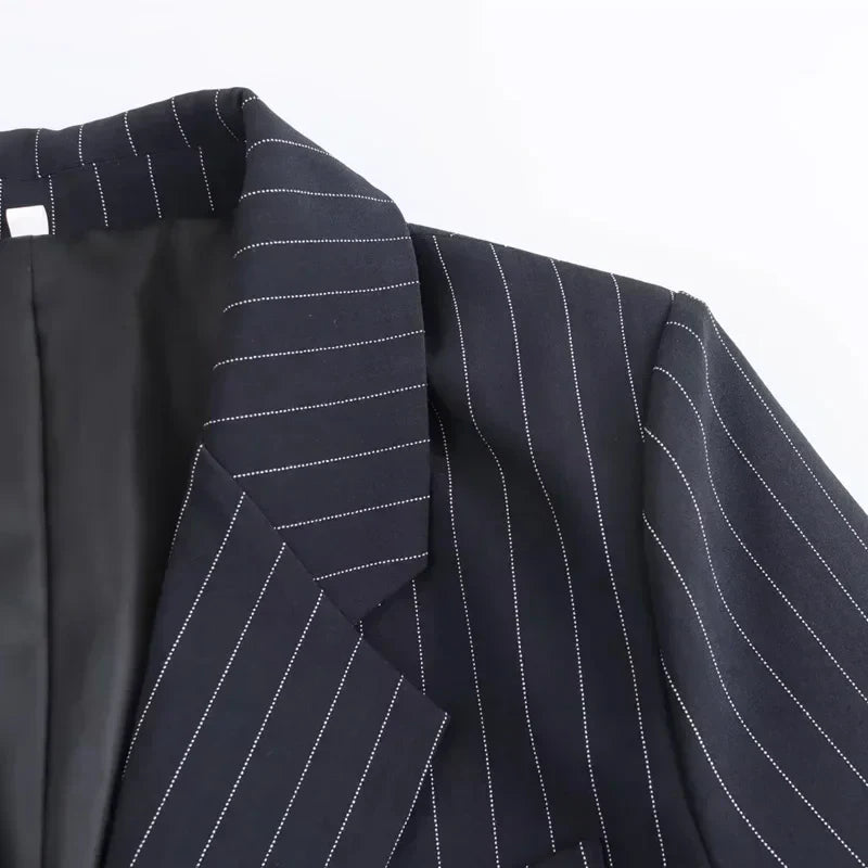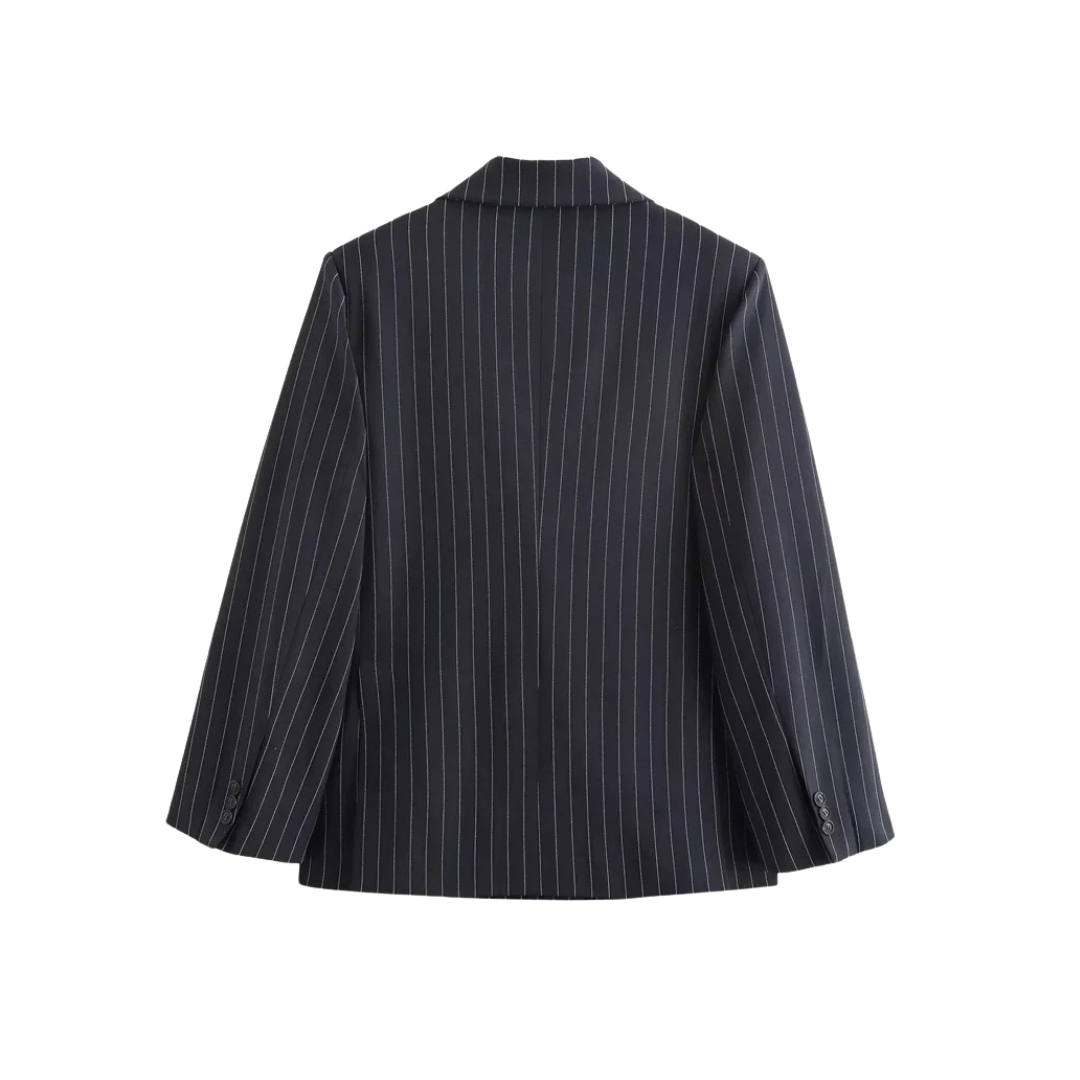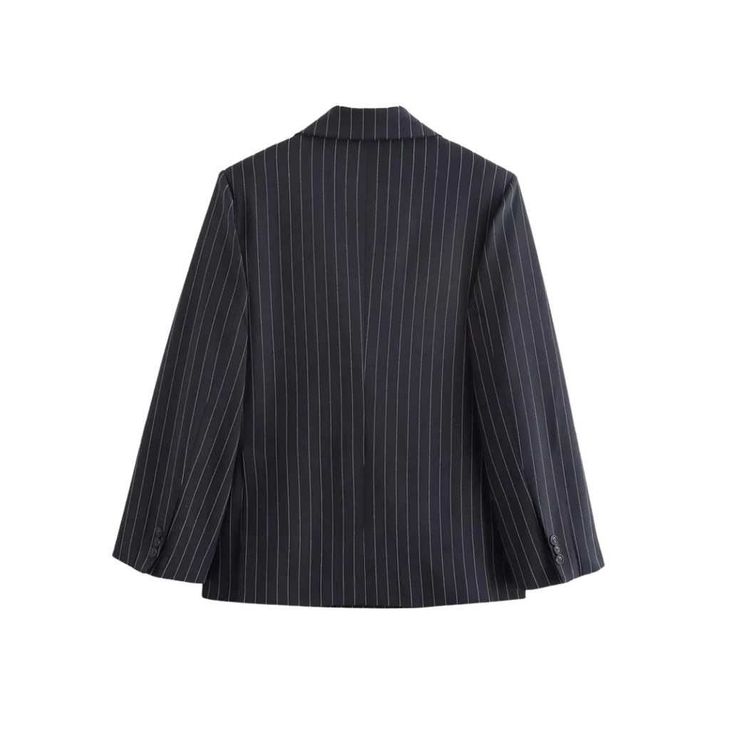 Blazer Croisé à Rayures Classiques – Élégance Intemporelle