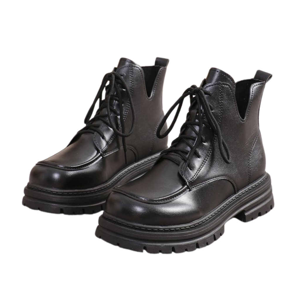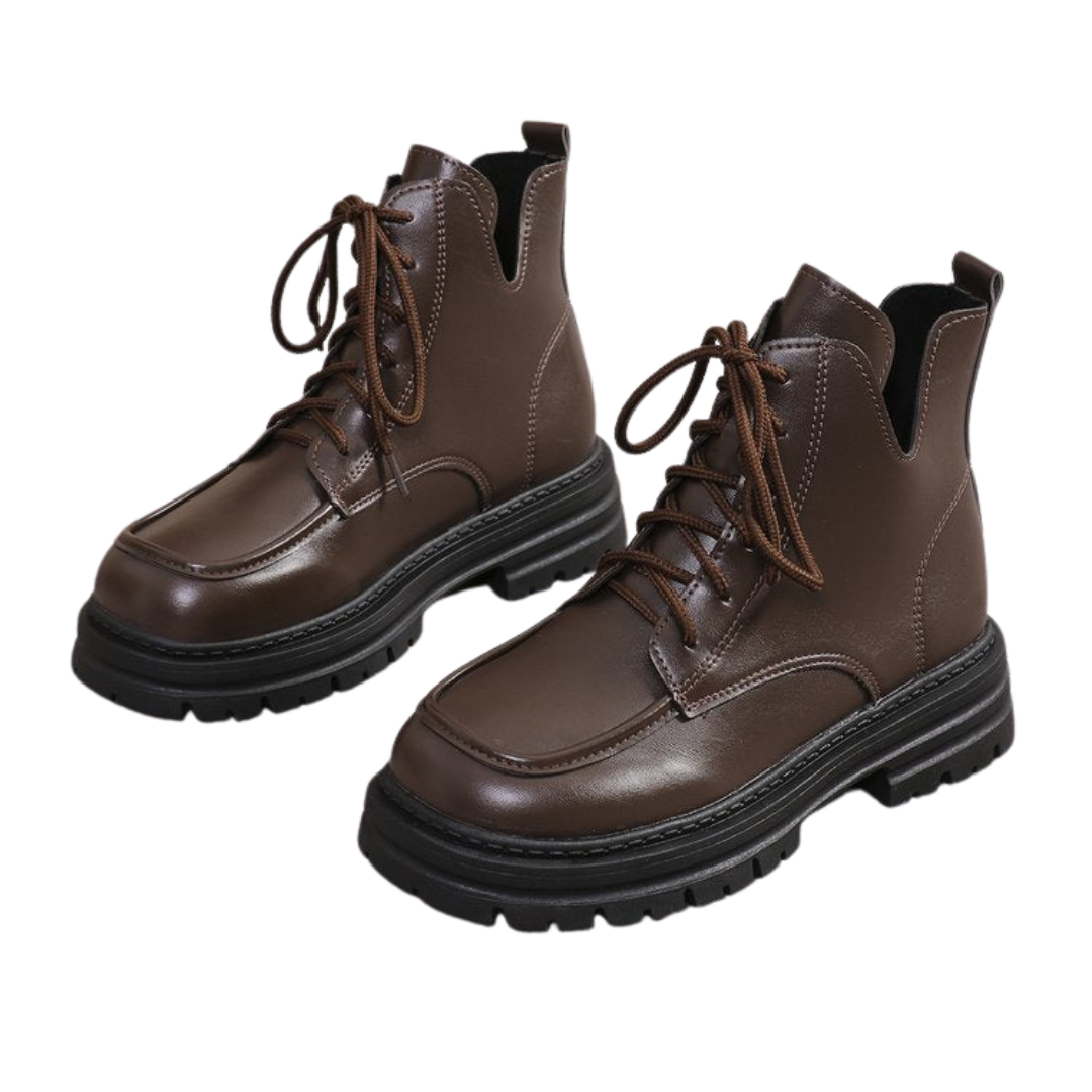 Conquérir les rues avec Perrine – le mélange ultime de robustesse et de style. Ces bottes de combat chunky à lacets sont conçues pour ceux qui veulent faire une déclaration tout en restant à l'aise toute la journée.