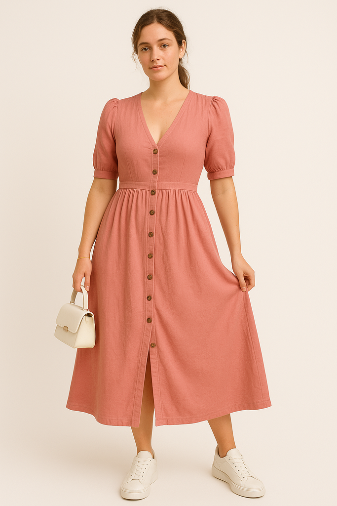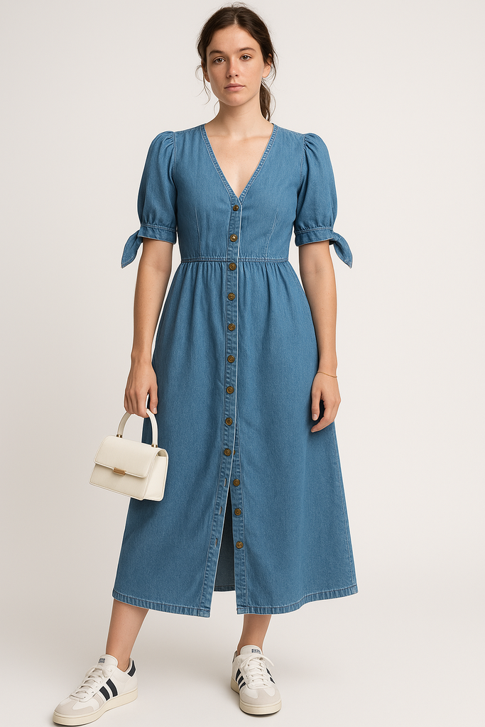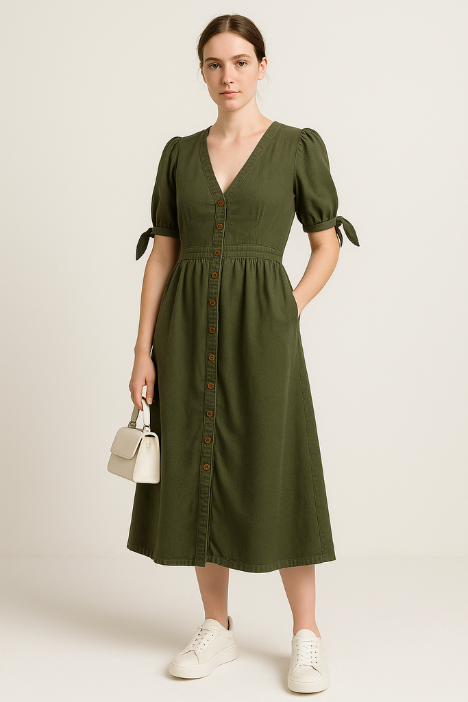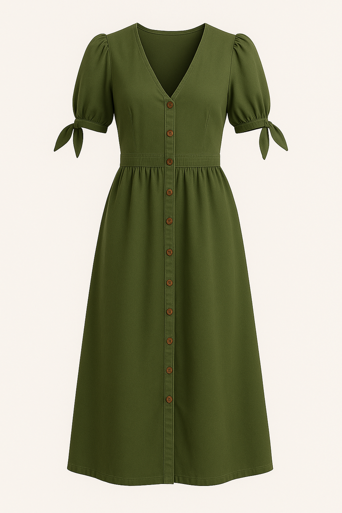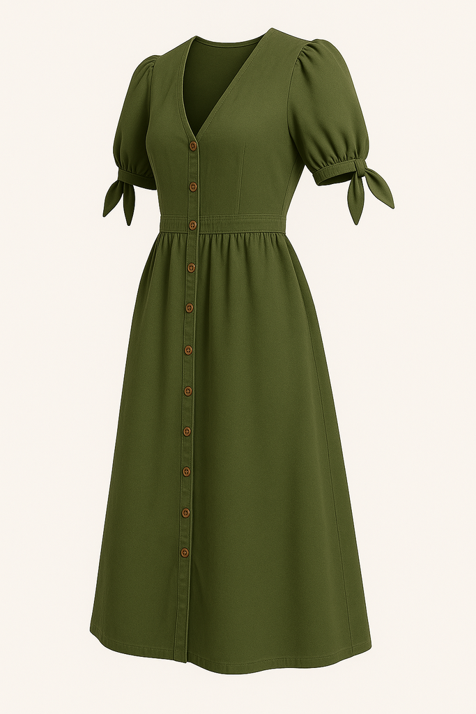 Découvrez la robe élégante à V-haut avec manches à nœud, un choix parfait pour allier style et confort. Cette robe se distingue par sa ligne de décolleté en V flatteuse et ses délicates manches ornées de nœuds, offrant une touche d'élégance et de simplicité. Son silhouette épouse délicatement vos formes tout en restant confortable, ce qui en fait un vêtement moderne et pratique.