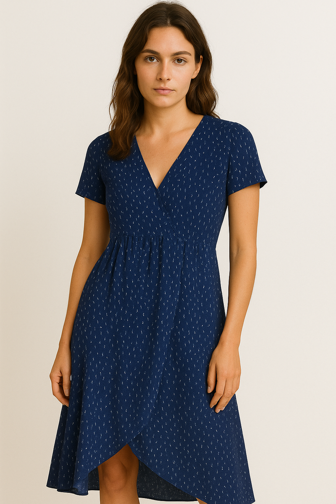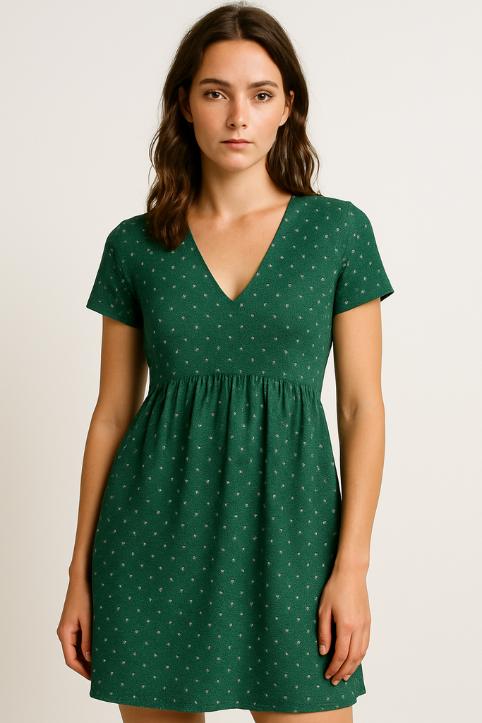 Apportez une touche fraîche et ludique à votre garde-robe avec cette robe midi à pois rétro. Cette robe charmante allie un imprimé à pois classique à une coupe moderne et flatteuse qui fera briller chaque femme. Avec son encolure ronde, ses manches courtes et sa longueur midi, elle offre un look soigné et aérien, parfait pour le quotidien, le travail ou un week-end ensoleillé.