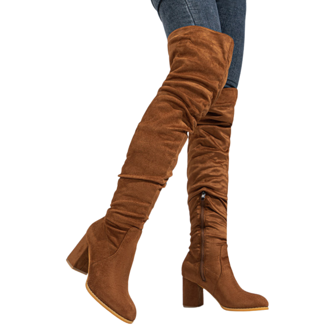 Élevez votre style avec les Bottes à Talon Bloc Sandrine au-dessus du Genou – le mélange parfait de sophistication et de confiance. Conçues pour les femmes qui aiment un look audacieux mais élégant, ces bottes présentent une texture douce, semblable à du daim avec un design lisse et froncé qui ajoute une touche de luxe à n'importe quelle tenue.