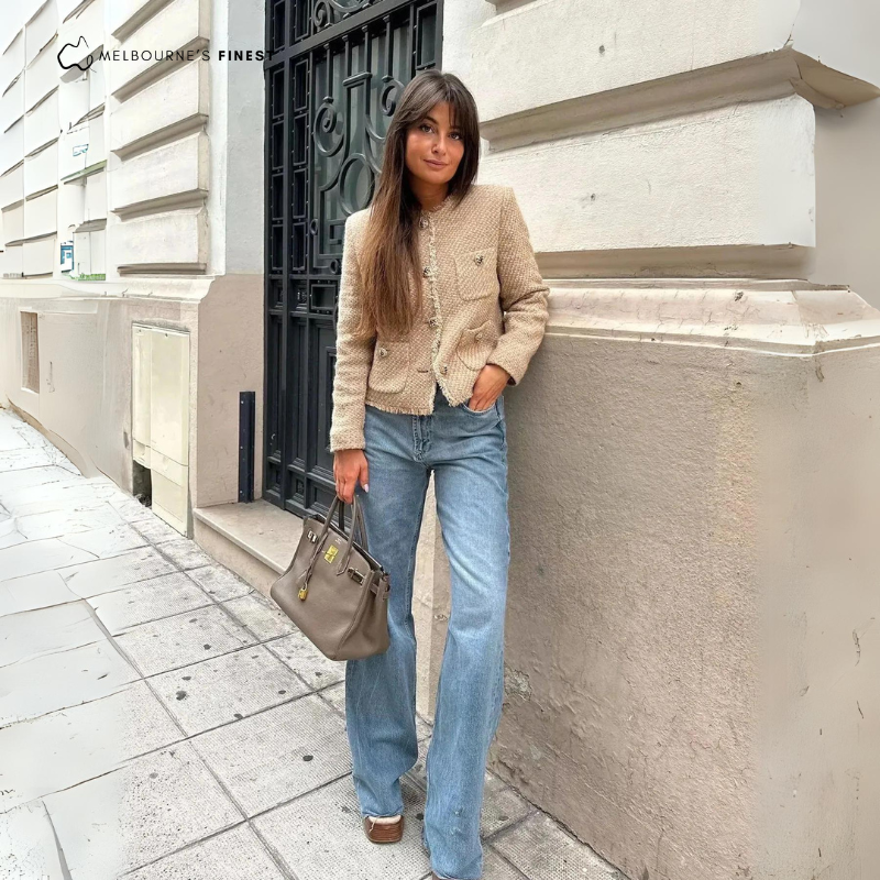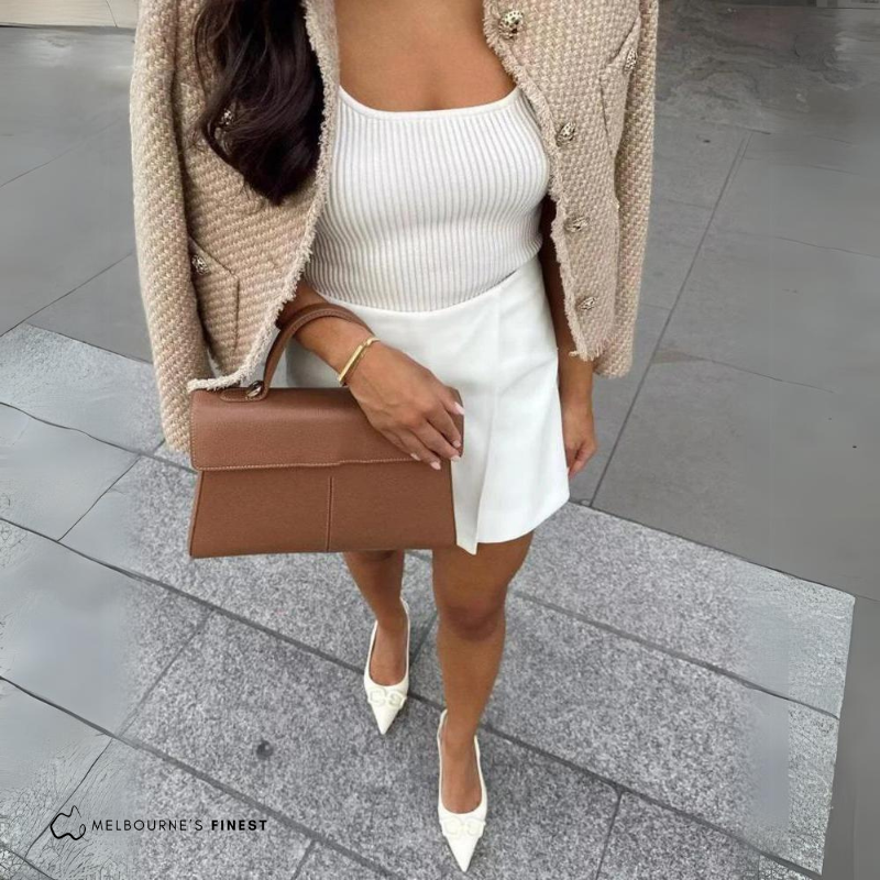 ✔️ Fashionable Tweed - Stay on-trend with the chic tweed fabric, adding a touch of sophistication to any outfit.