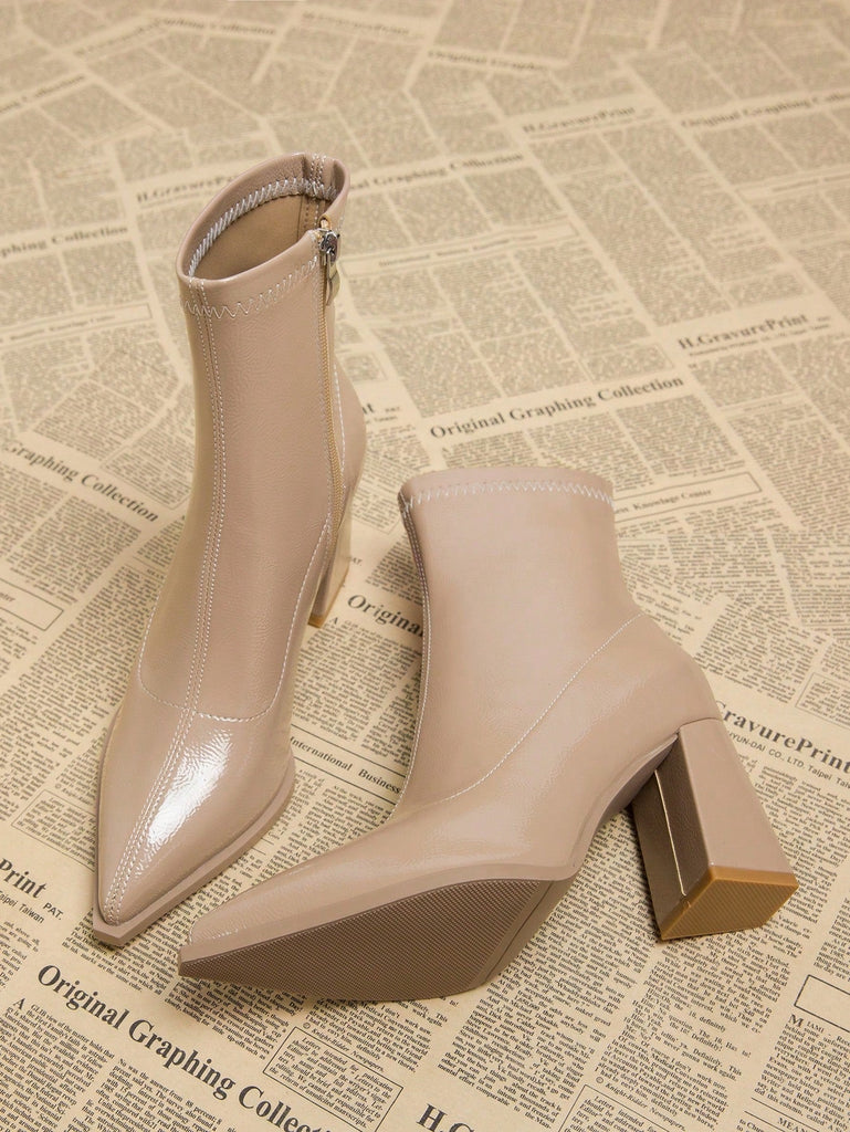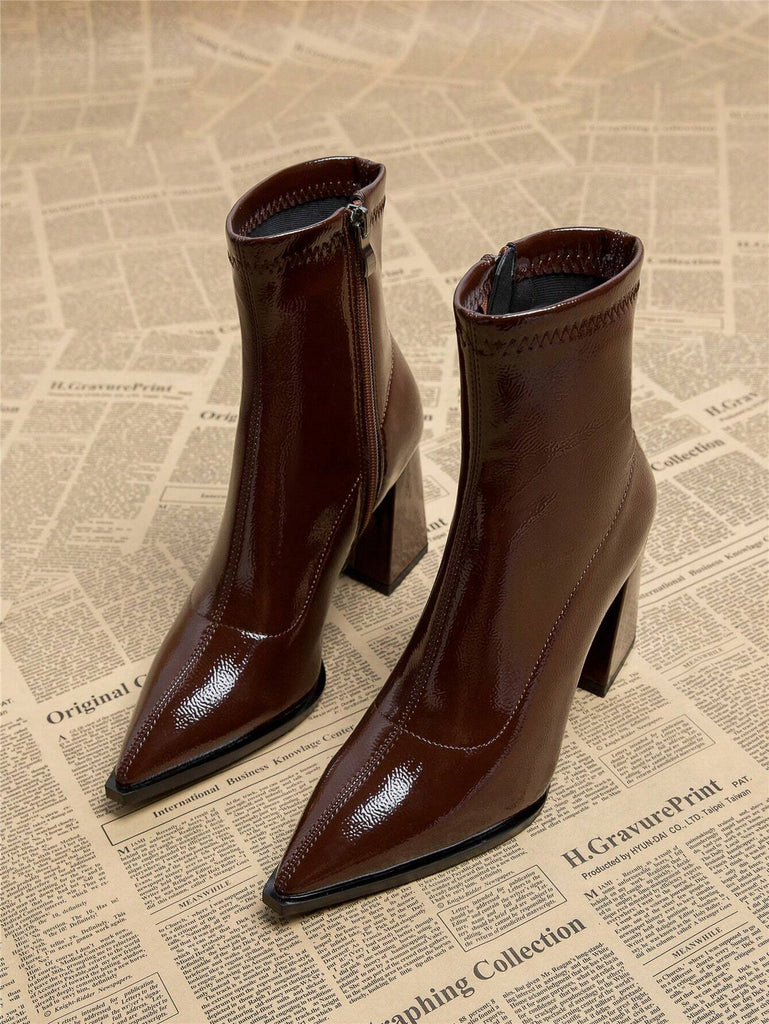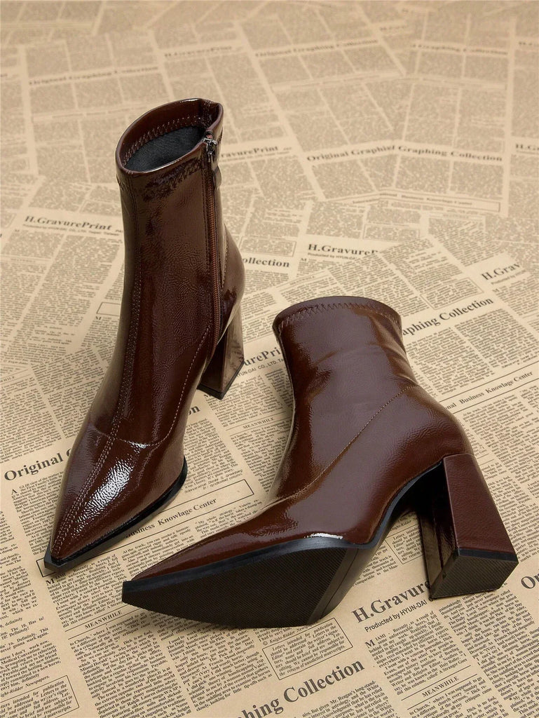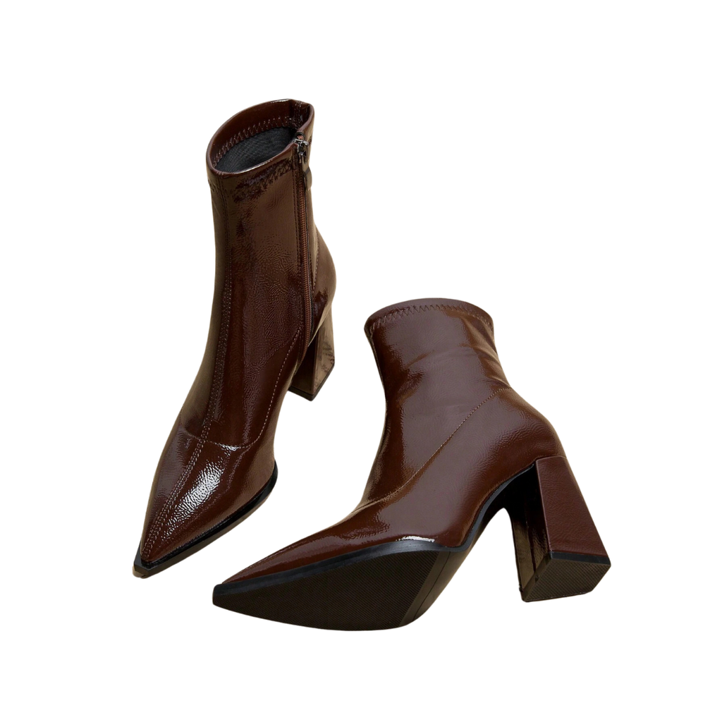 Entrez dans la sophistication avec les bottines Stéphanie – la combinaison ultime d'élégance et de style audacieux. Ces bottines élégantes sont fabriquées en cuir PU verni de haute qualité, leur conférant une finition brillante luxueuse qui élève instantanément n'importe quelle tenue.