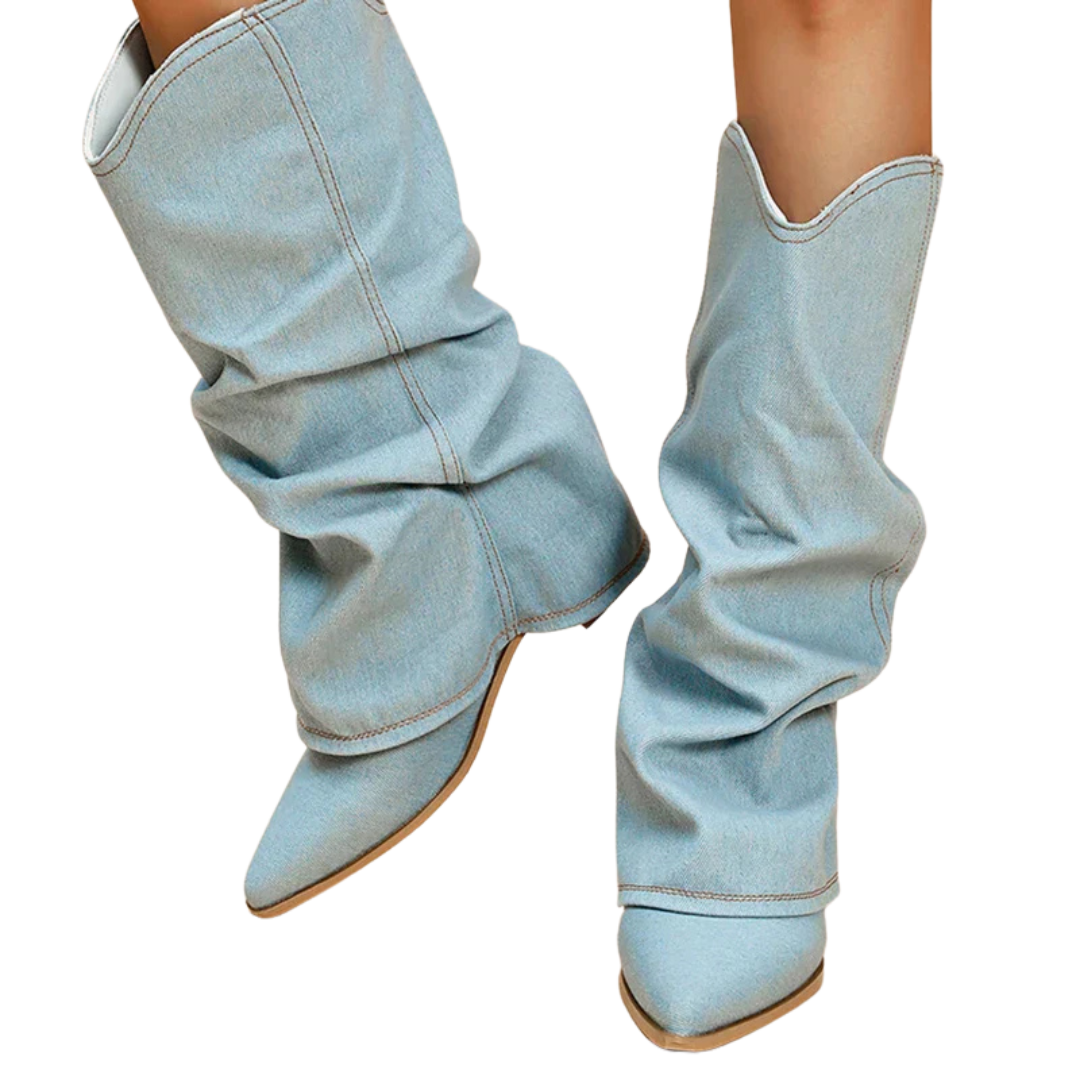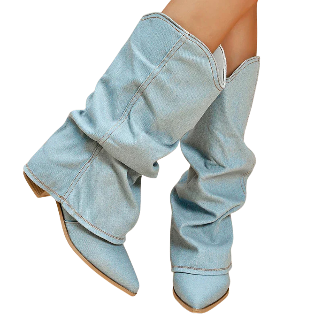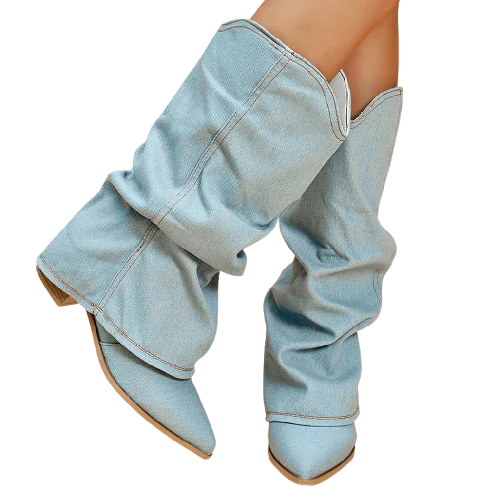Ces bottes jusqu'au genou élèvent n'importe quel look. Avec leur design élégant et leur tissu en denim robuste, elles donnent à votre tenue une vibe audacieuse. Que vous les associiez avec une robe ou un look denim sur denim - ces bottes sont parfaites pour toutes les occasions. Des festivals à une escapade décontractée en ville, ces bottes sont votre nouvel indispensable !