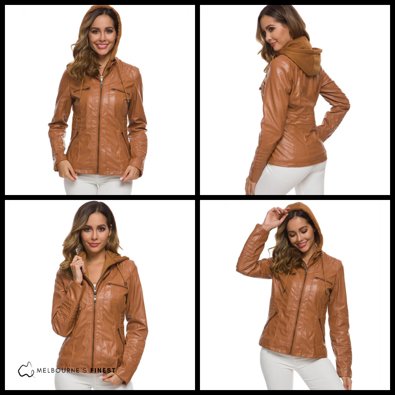 Prepare to embrace elegance and warmth with our Tracy™ Stylish Leather Jacket, perfect for the colder days ahead. Crafted with a smooth zipper closure, this jacket exudes sophistication while keeping you cozy in chilly weather. The thermal lining ensures excellent warmth and comfort, making it ideal for all outdoor activities during the cooler months. Plus, with the optional removable hood featuring an adjustable drawcord, you can regulate your temperature with ease.