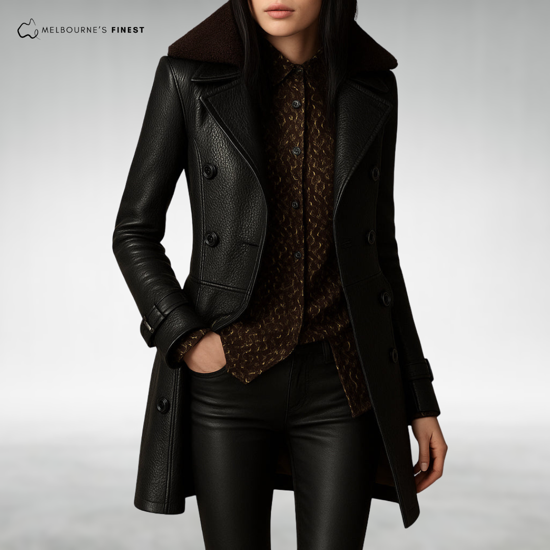 Valeria™ Elegant Women’s Leather Coat: Tailored Elegance with Lasting Comfort