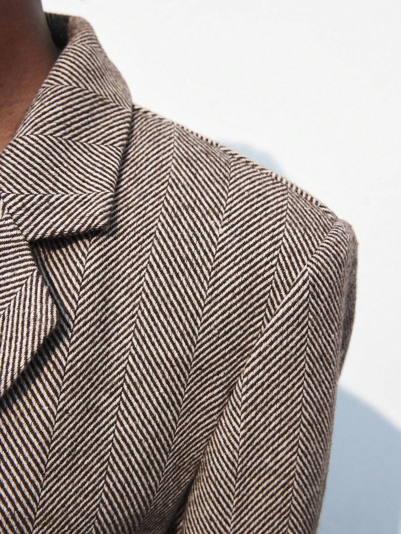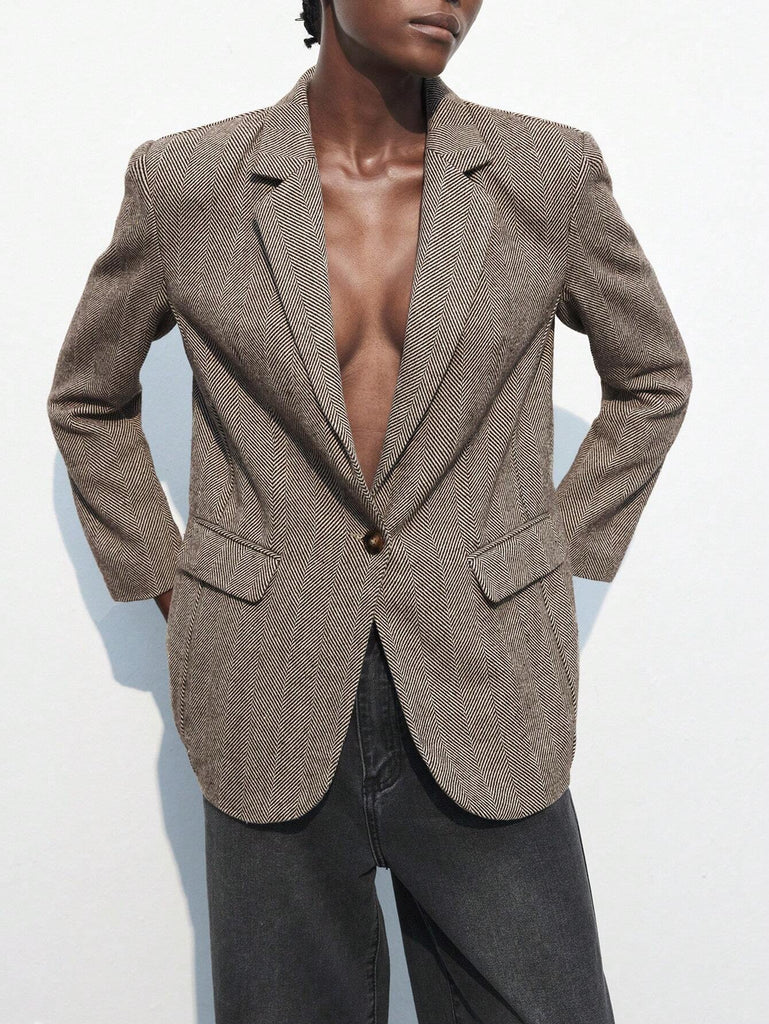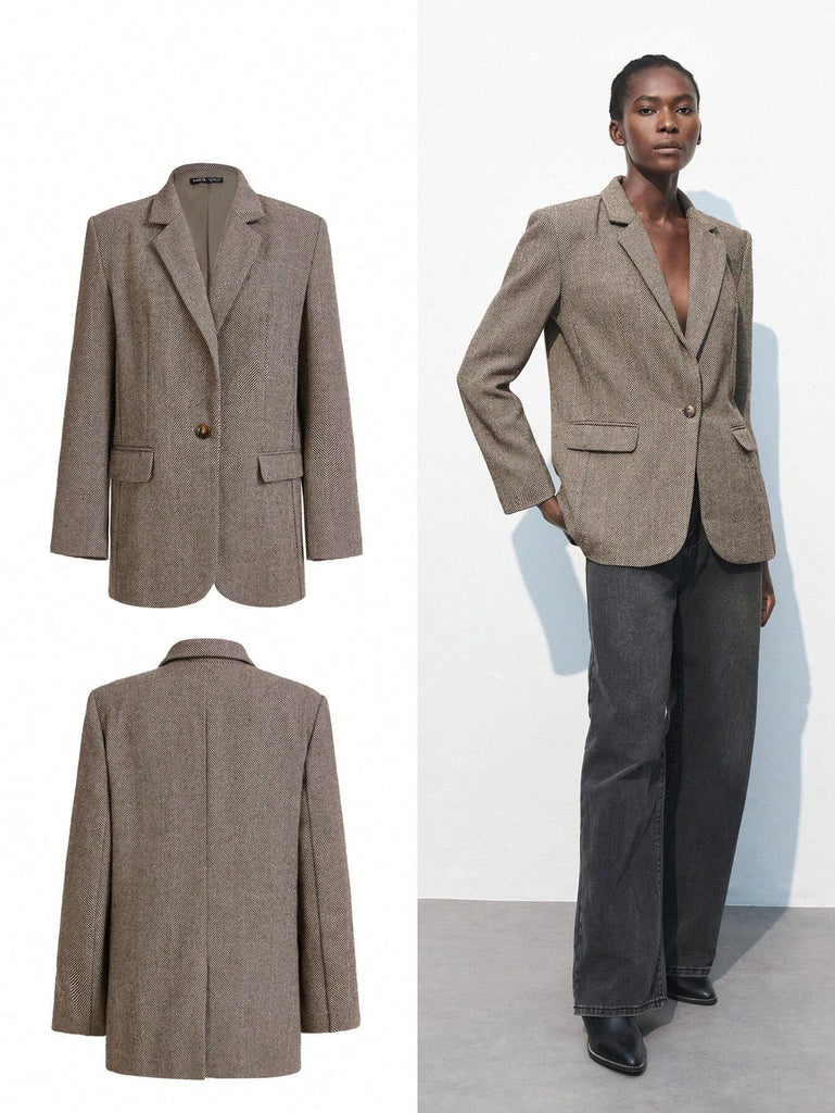 Blazer Café Brun à Bouton Unique – Élégance Sans Effort